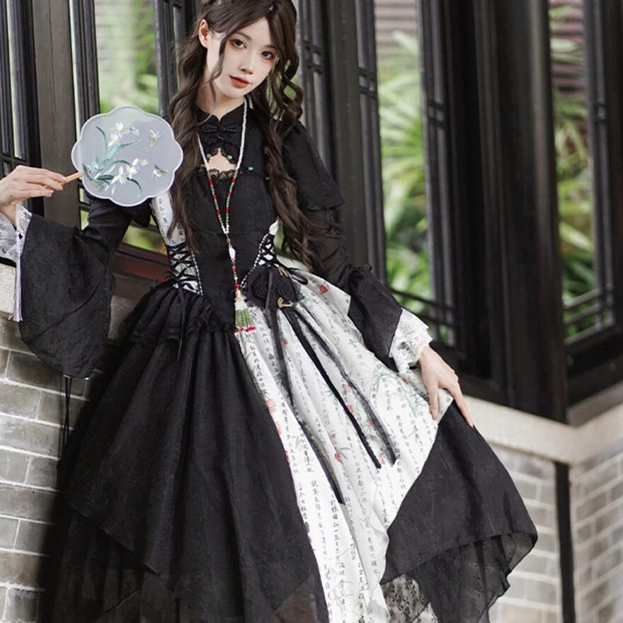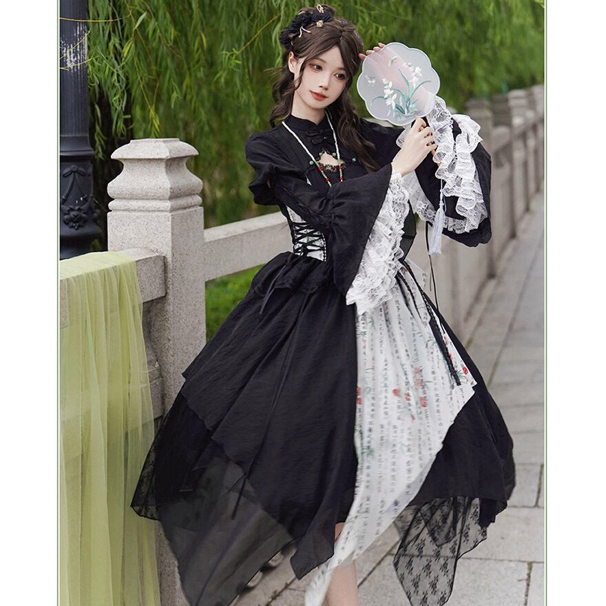 サブカル 服 地雷系 通販 半袖ワンピース ドレス イレギュラーヘム 透け感 アシンメトリー 中華ロリータ 華ロリ 量産型