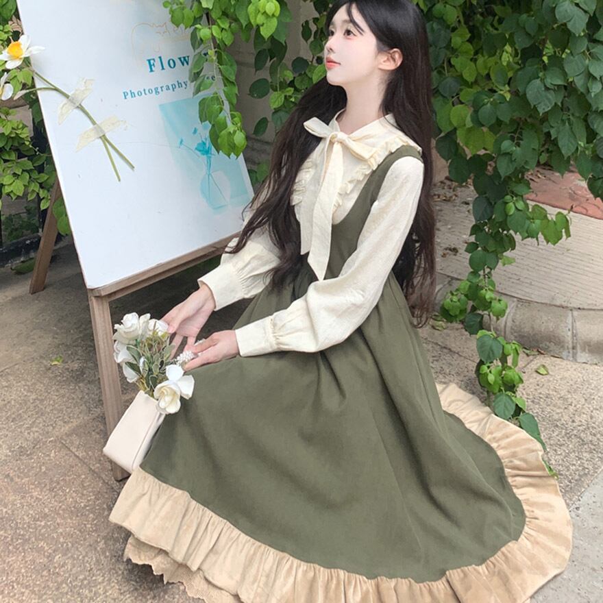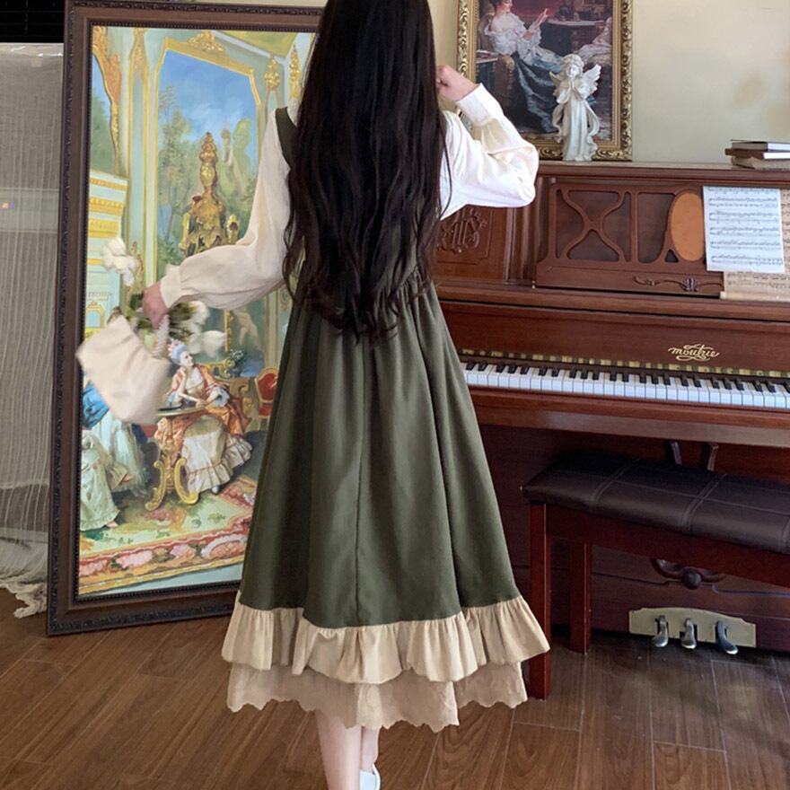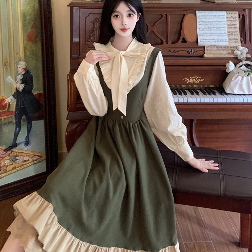 サブカル 服 地雷系 通販 ジャンスカ ワンピース フリル Aライン ロング丈 クラロリ エレガント 上品 大人ロリータ 量産型