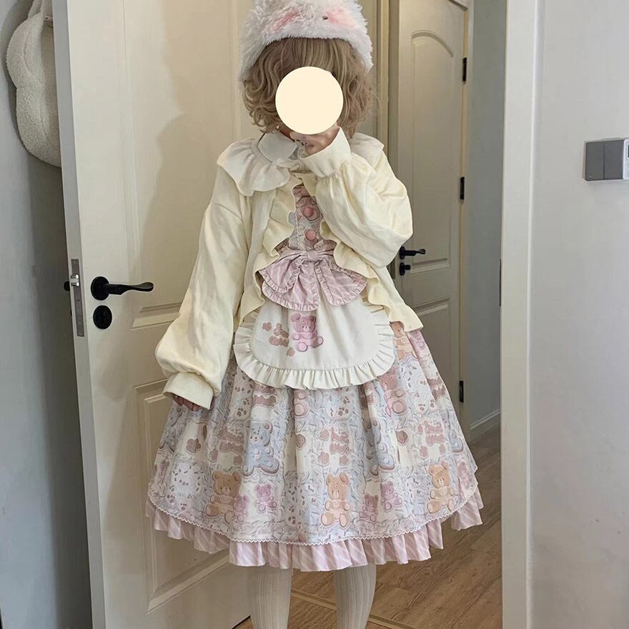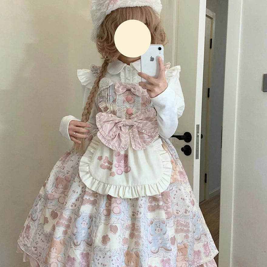 サブカル 服 地雷系 通販 ジャンスカ ワンピース エプロン付き メルヘン くま メイド服 ドールファッション ベビードール コンカフェ メイドカフェ 衣装 量産型