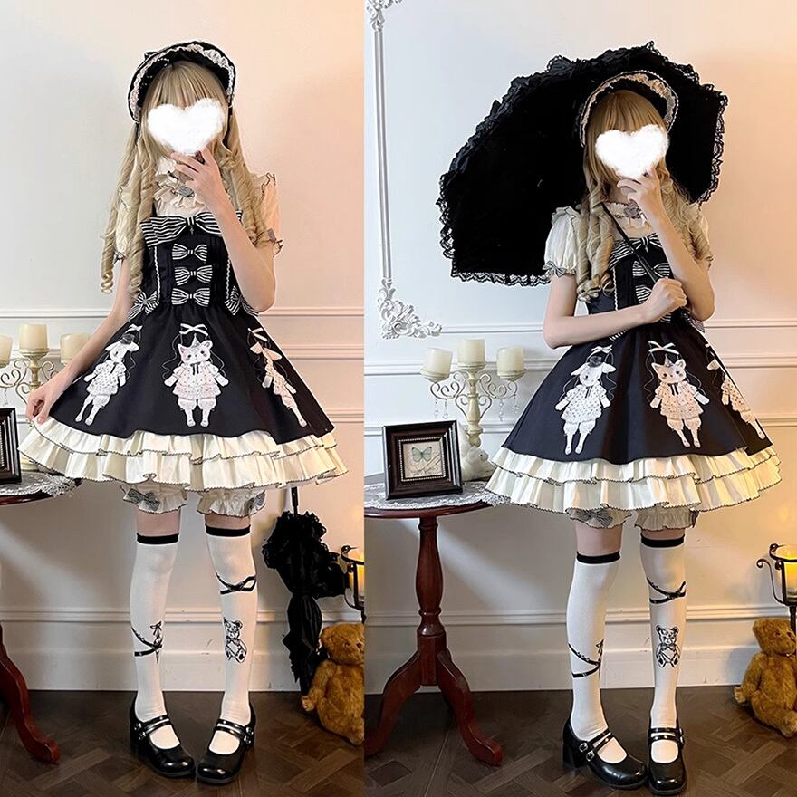 サブカル 服 地雷系 通販 予約販売 セットアップ ワンピース ブラウス リボン 子猫 子羊 セットアップ 半袖 ブラウス ゴスロリ ろりぃた