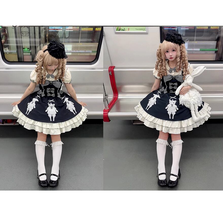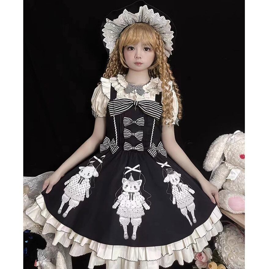 サブカル 服 地雷系 通販 予約販売 ジャンスカ ワンピース ノースリーブ 子猫 子羊 ゴスロリ 闇かわいい リボン