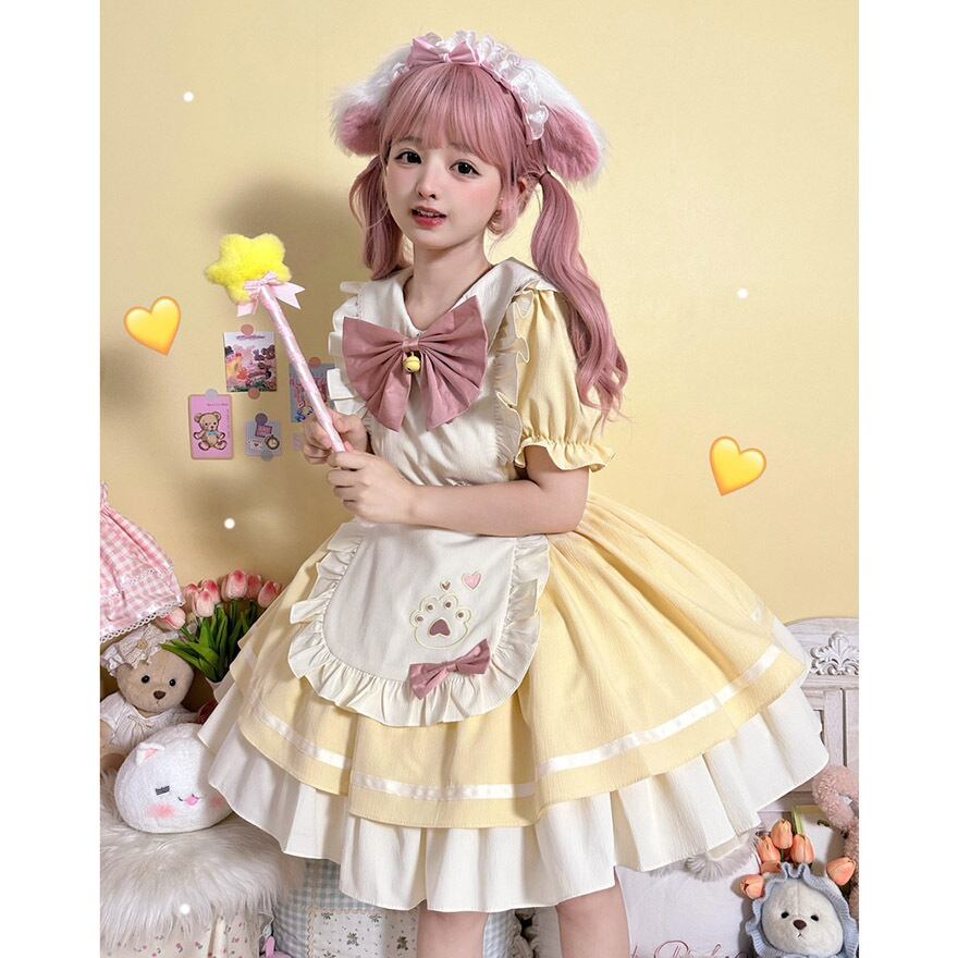 サブカル 服 地雷系 通販 ワンピース パフスリーブ フリル リボン エプロン メイド服 コンカフェ メイドカフェ