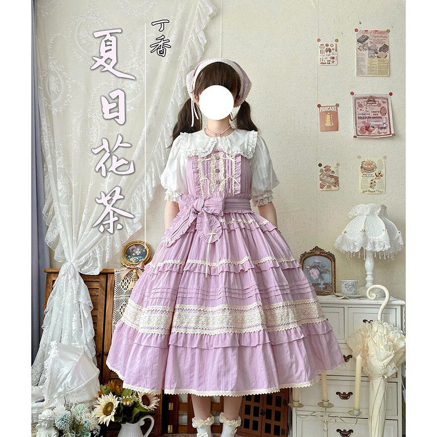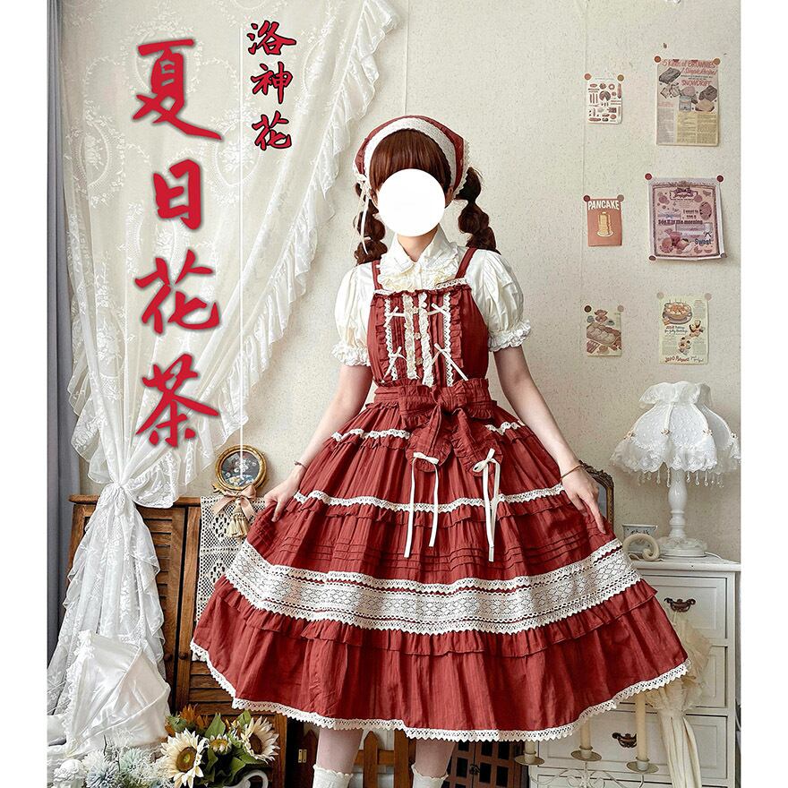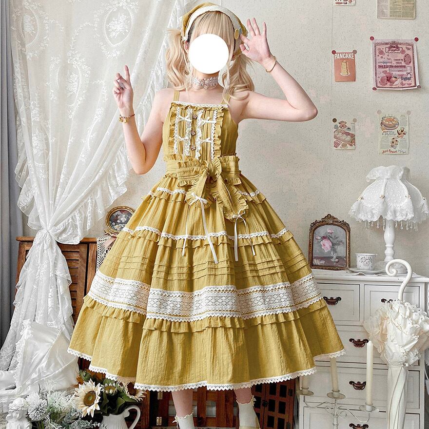 サブカル 服 地雷系 通販 ジャンスカ キャミワンピース ロングスカート フリル コットン ウエストベルト付き クラロリ クラシカル レトロ