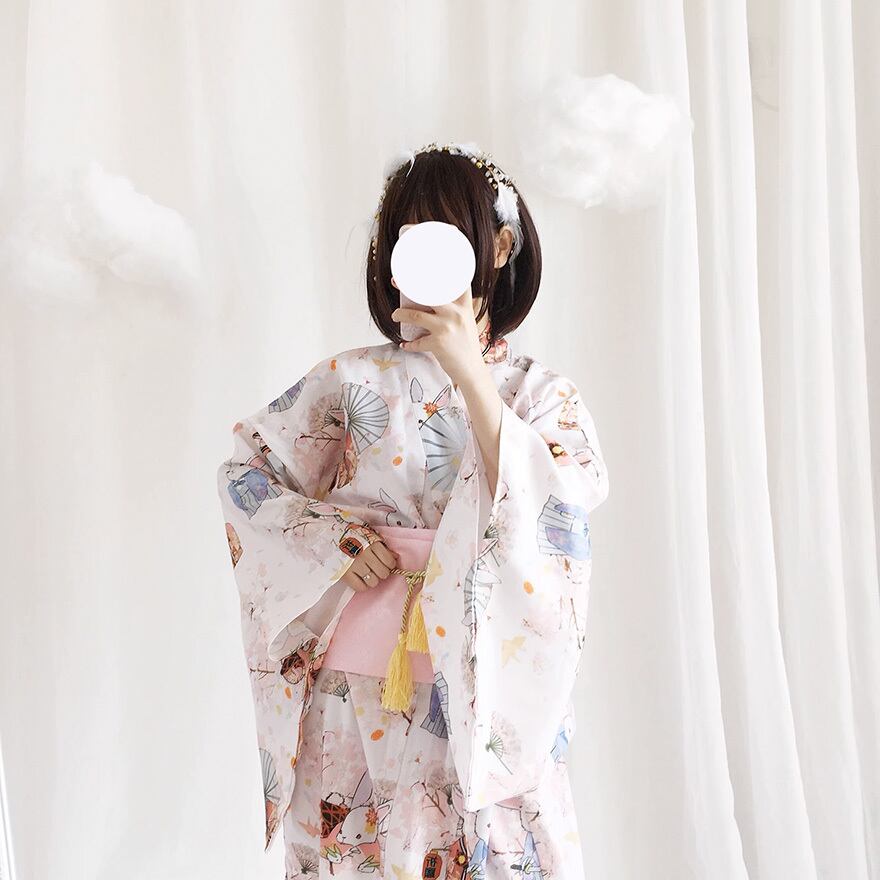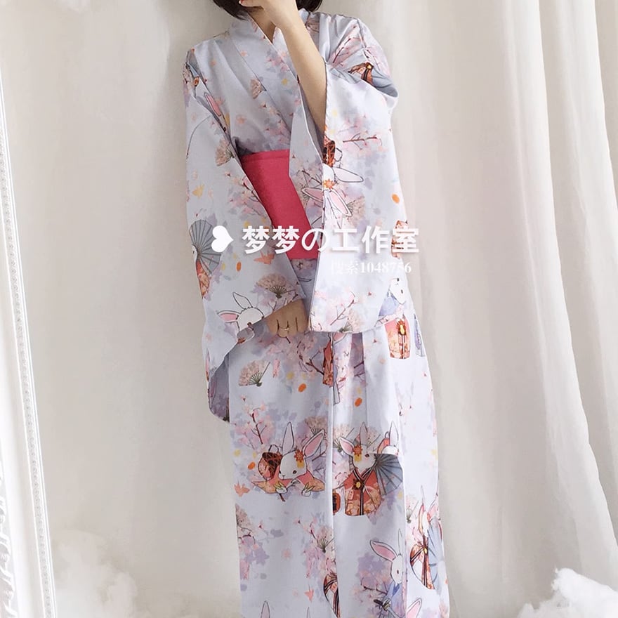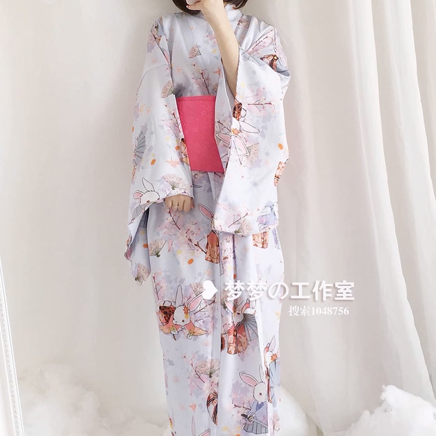ウサギのプリントが可愛い着物です。