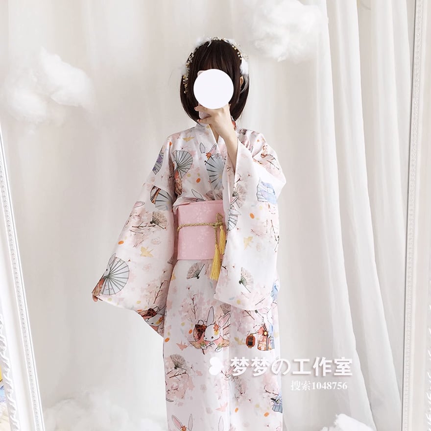 サブカル 服 地雷系 通販 和装 和風 和ロリ 着物 ウサギ プリント柄