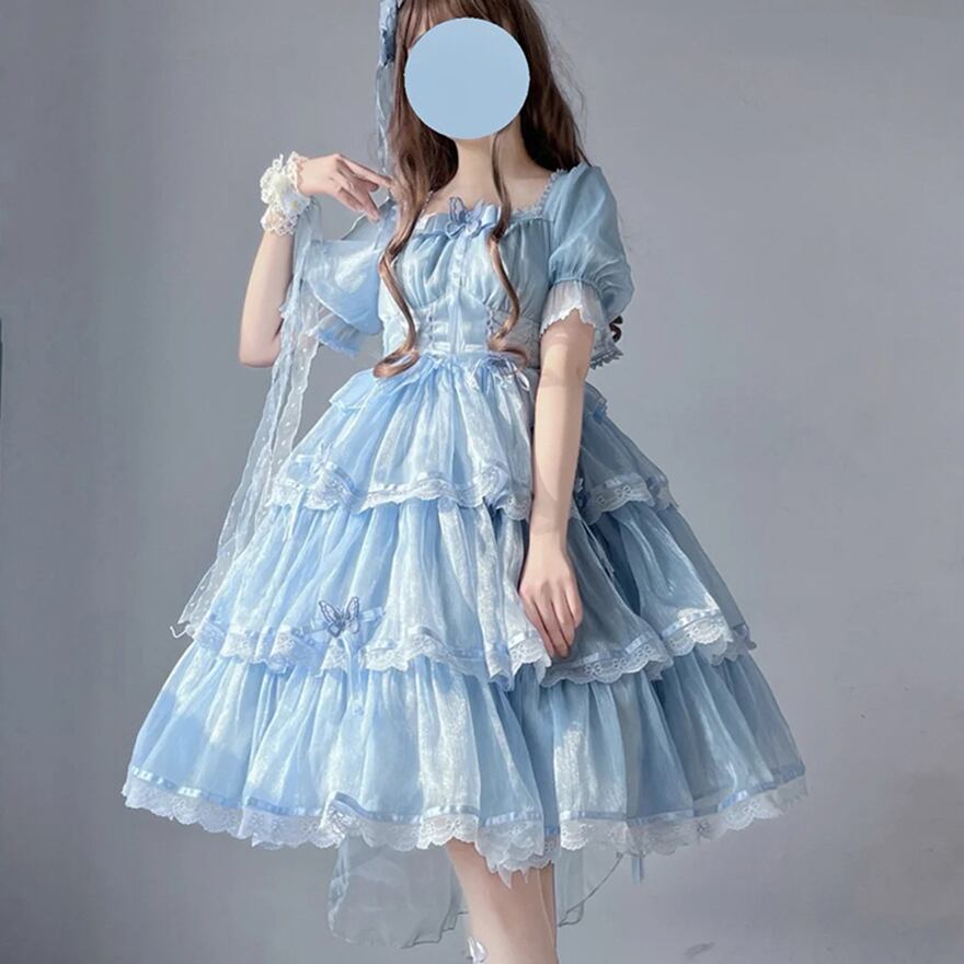 サブカル 服 地雷系 通販 ワンピース レース 蝶 バタフライ プリンセスドレス ロリィタ 服