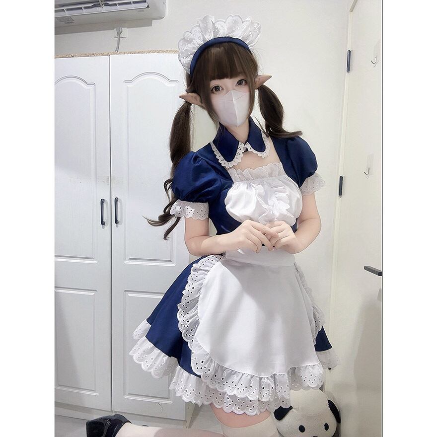サブカル 服 地雷系 通販 メイド服 ワンピース エプロン カチューシャ ネックカバー 4点セット メイドカフェ コンカフェ