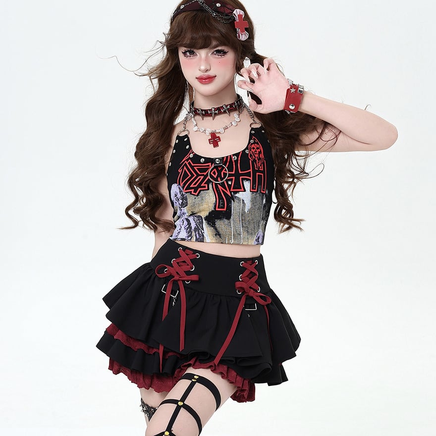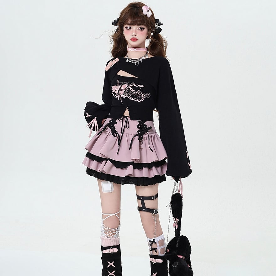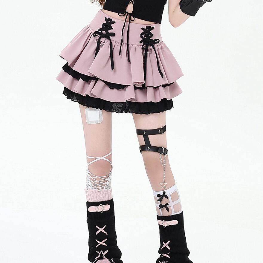 サブカル 服 地雷系 通販 ファッション 女子女子 ケーキスカート フリル パフィースカート ミニ丈 レースアップ リボン CRAZYGIRL ケーキスカート JKロリィタ