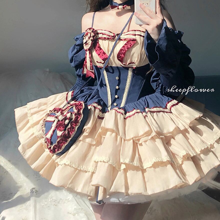 サブカル 服 地雷系 通販 ワンピース ドレス 長袖 プリンセスドレス チュチュ オフショルダー クラロリ
