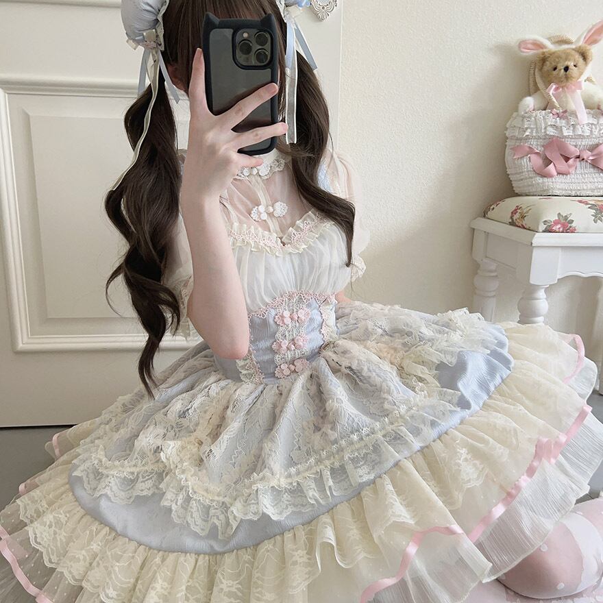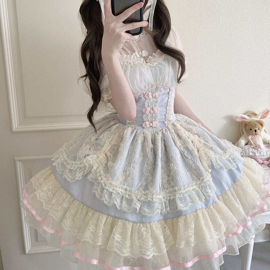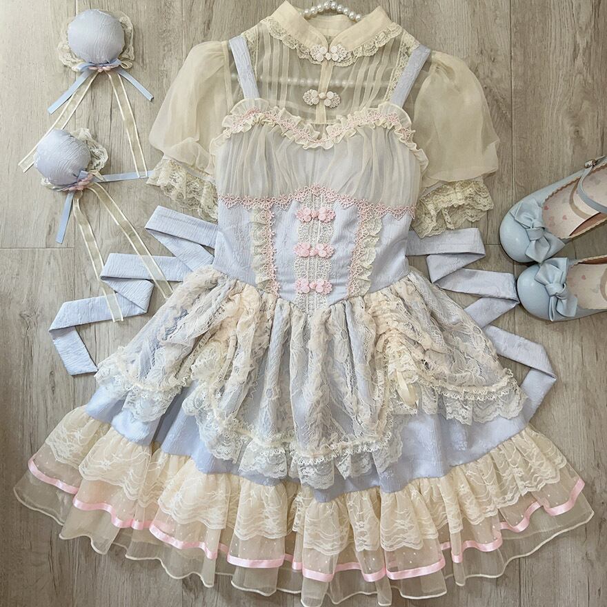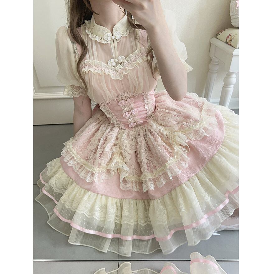 サブカル 服 地雷系 通販 ジャンスカ ワンピース レース ドレス チャイナ風 中華風 ロリィタ 服 ガーリー