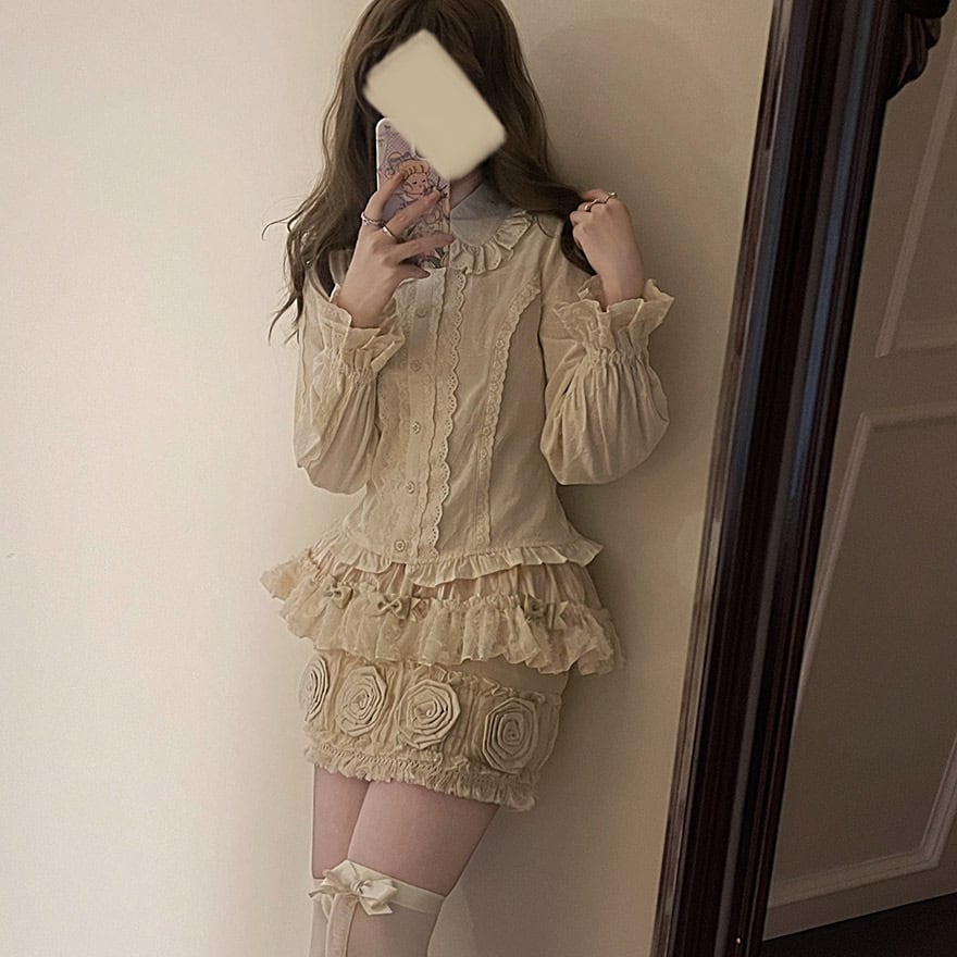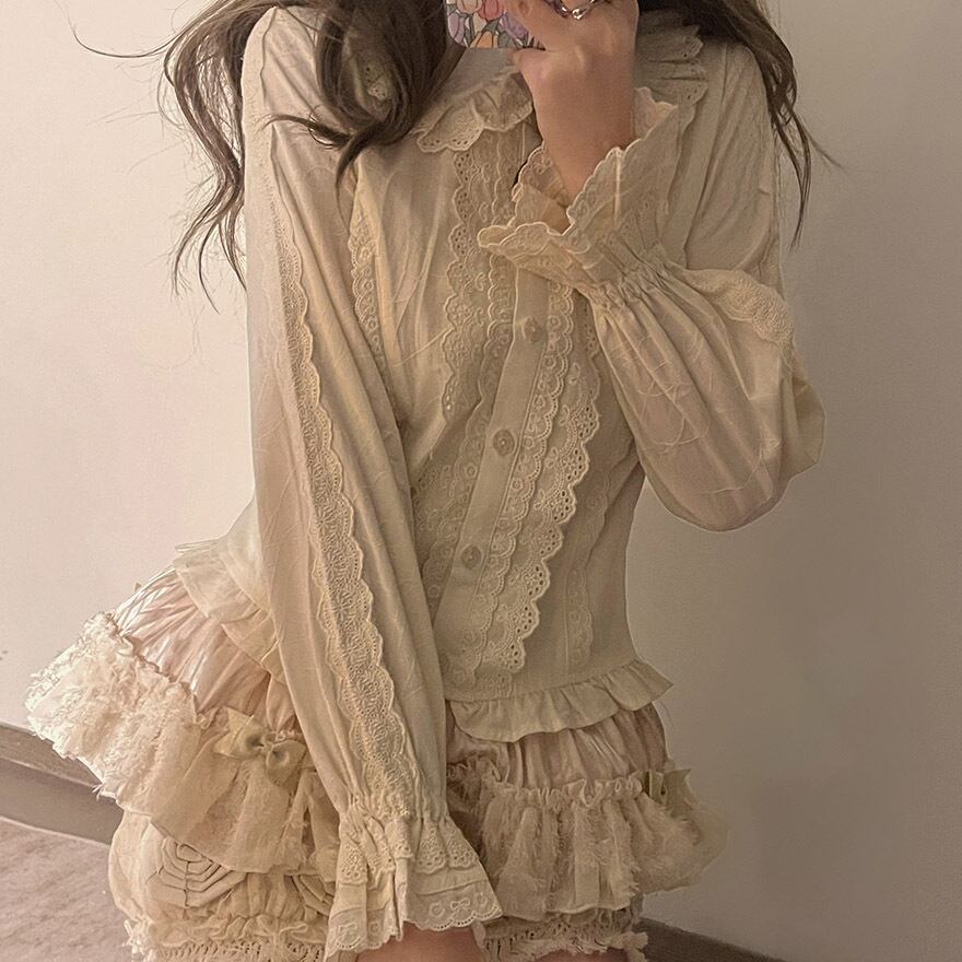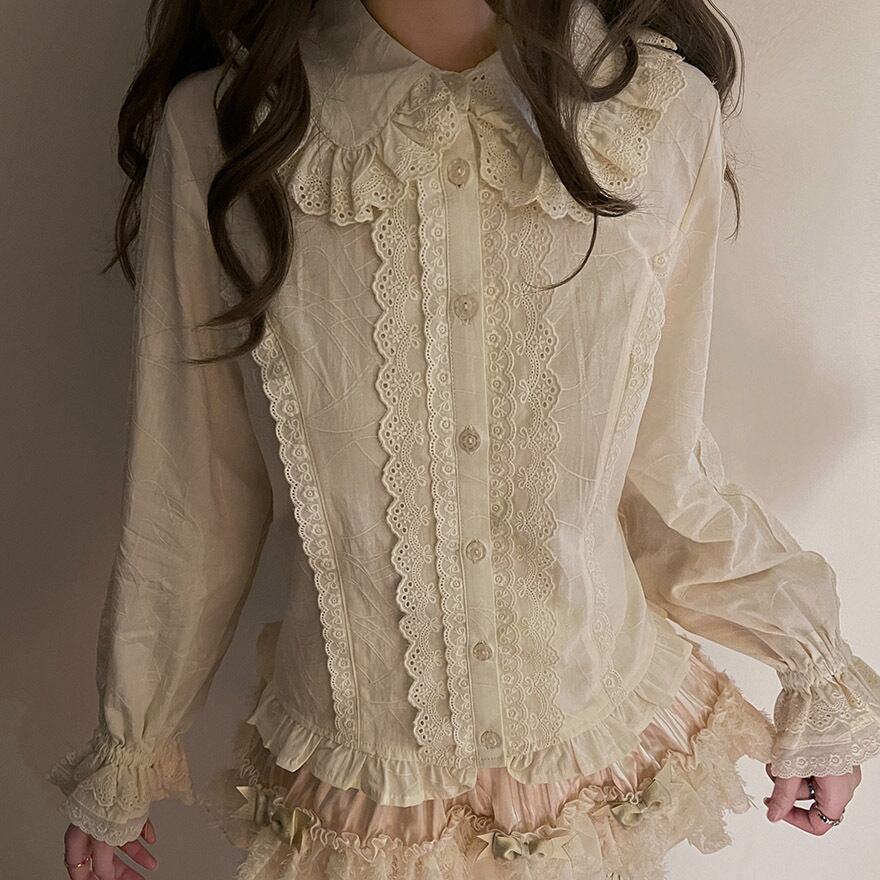 サブカル 服 地雷系 通販 長袖ブラウス シャツ クラシカル 清楚 クラロリ レース ガーリー かわいい