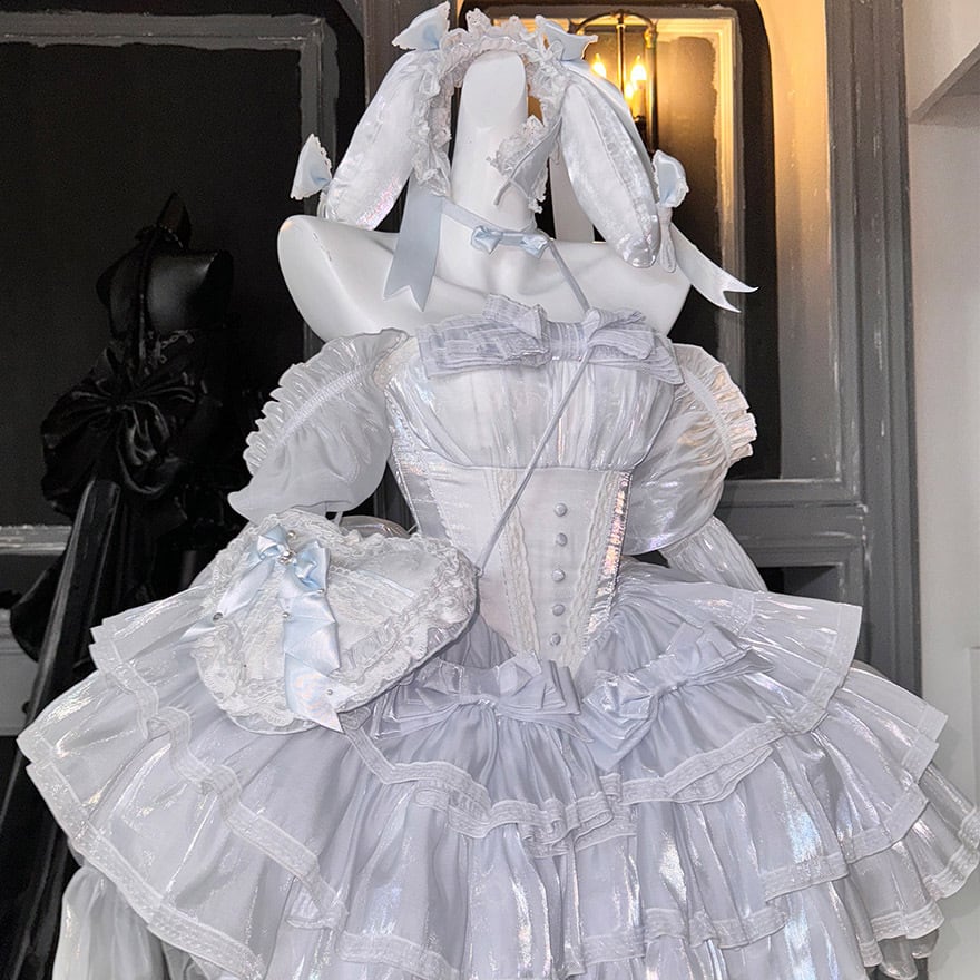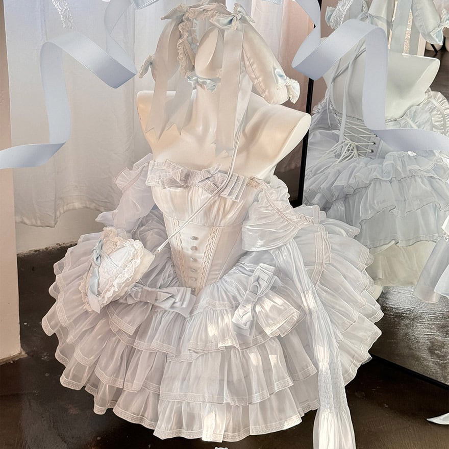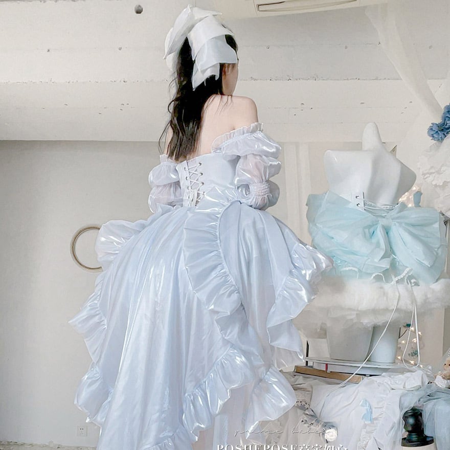 サブカル 服 地雷系 通販 コンカフェ ステージ イベント衣装 ワンピース ジャンパースカート シフォン リボン ブルー ゆめかわふぁっしょん パステルカラー ベビードール