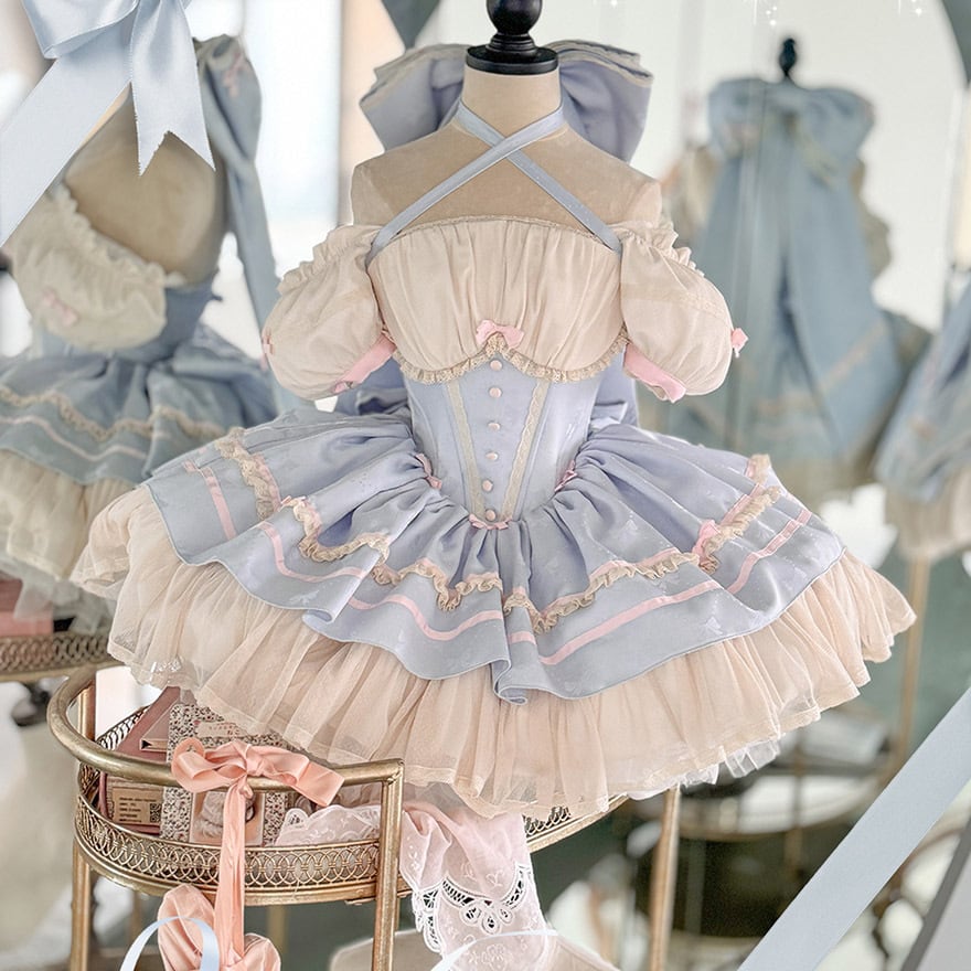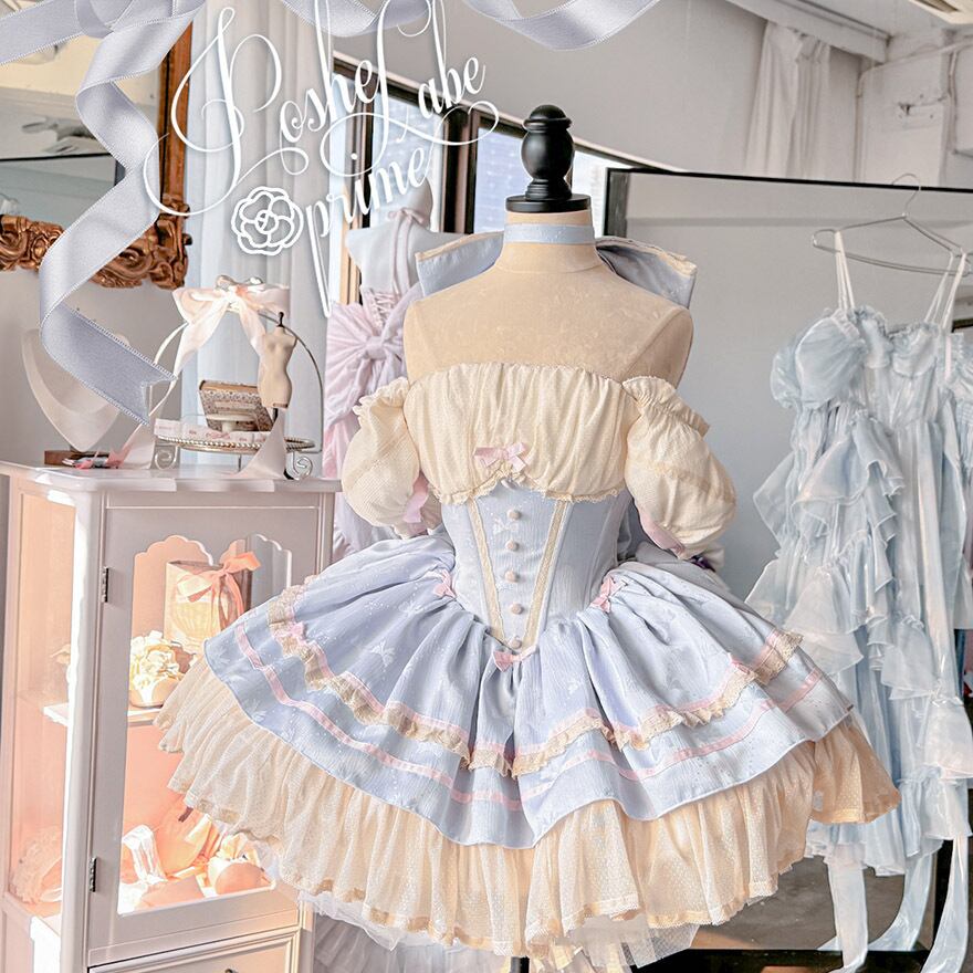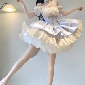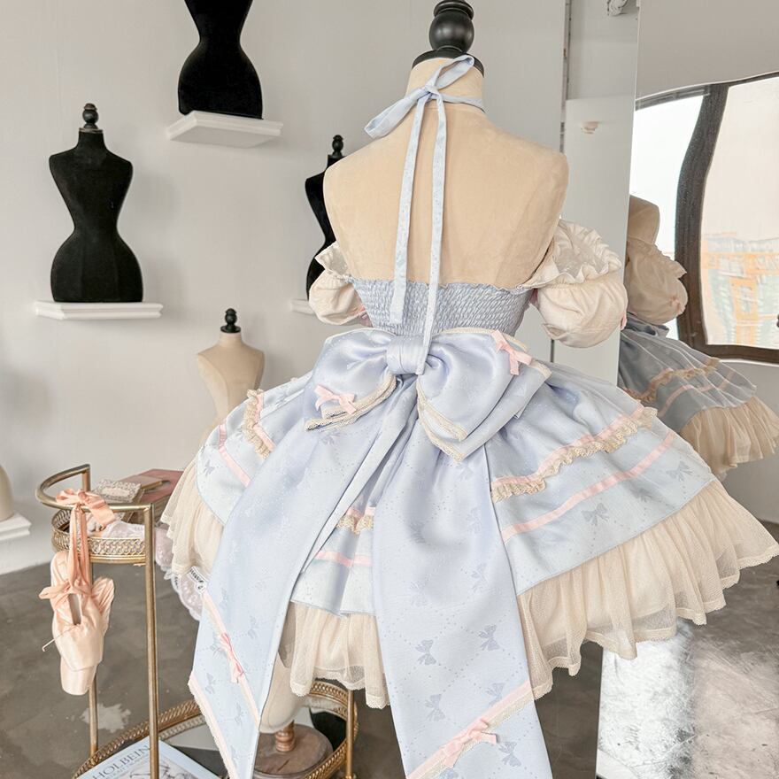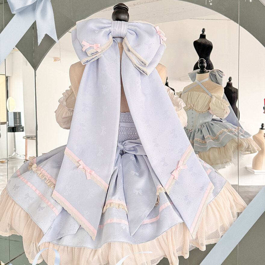サブカル 服 地雷系 通販 イベント コンカフェ ステージ衣装 ジャンパースカート ワンピース パフスリーブ バックリボン フリル ゆめかわふぁっしょん パステルカラー ベビードール