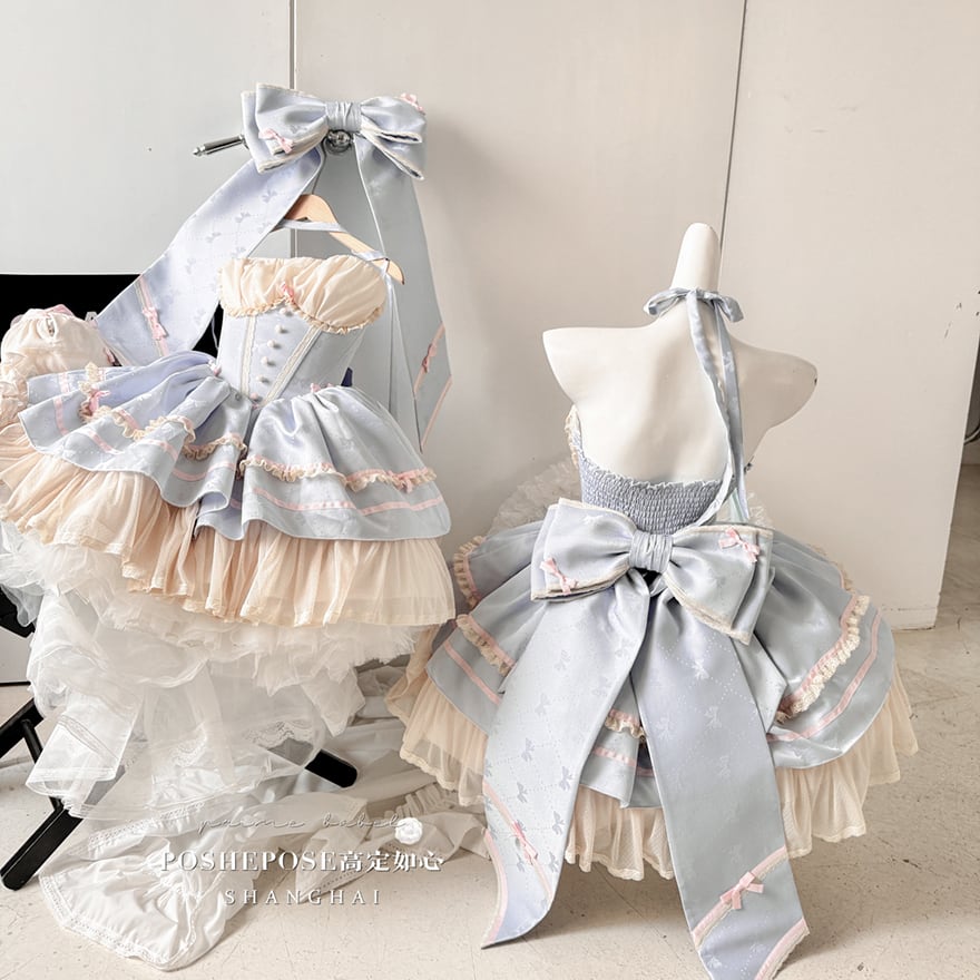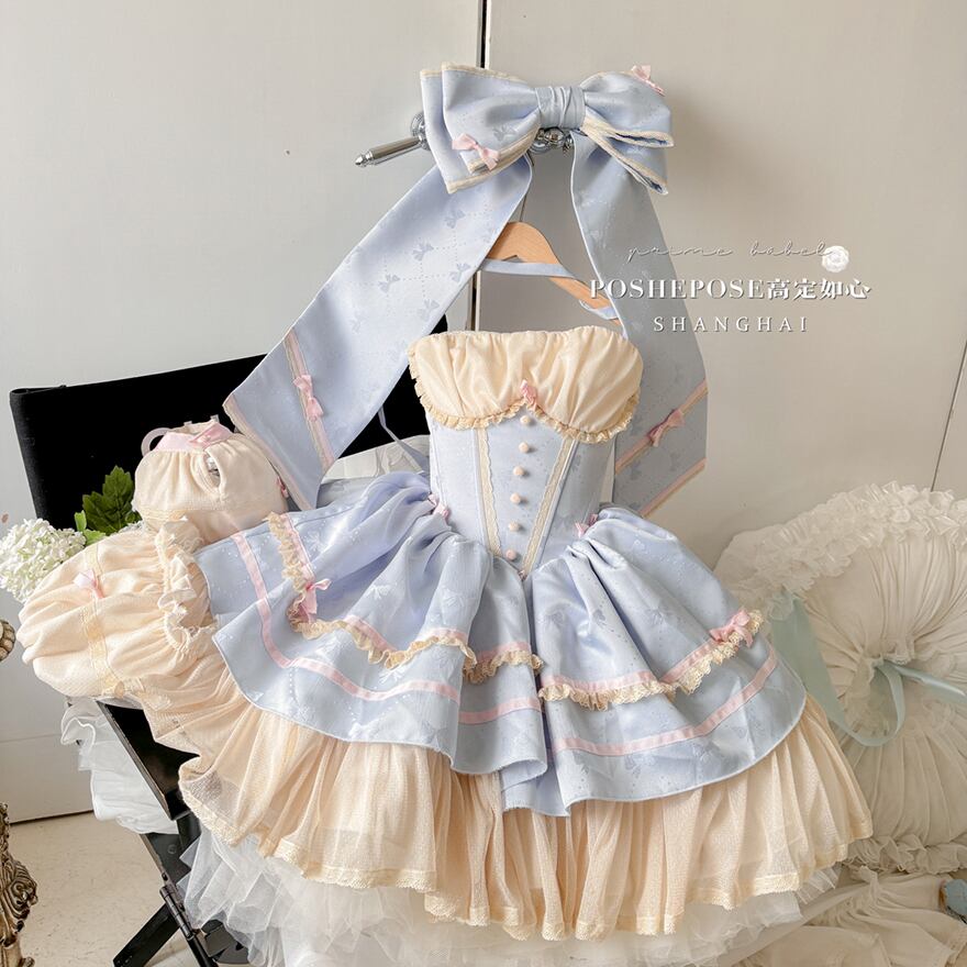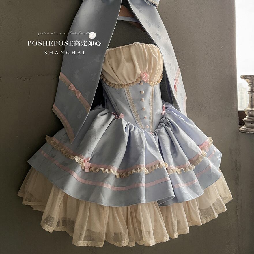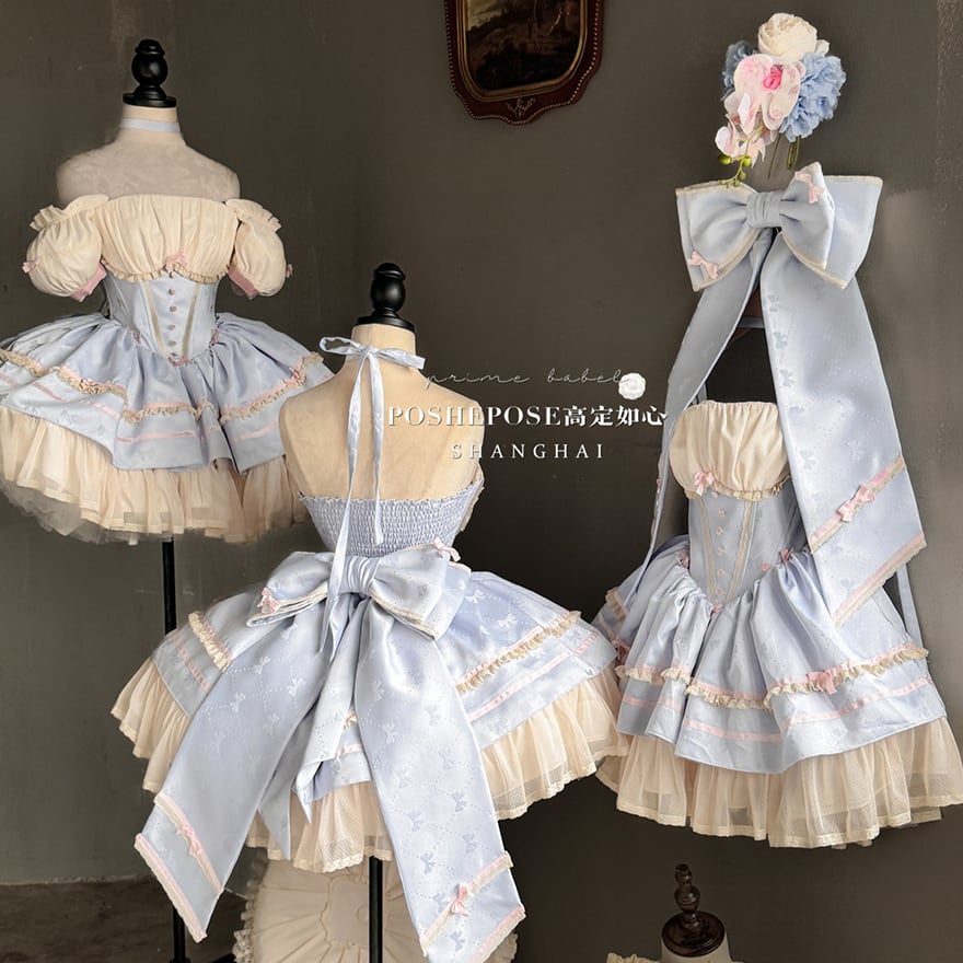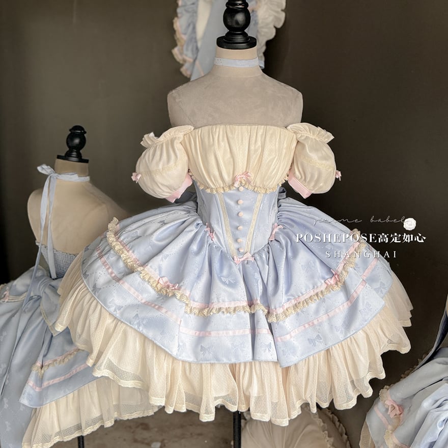 サブカル 服 地雷系 通販 イベント コンカフェ ステージ衣装 ジャンパースカート ワンピース パフスリーブ バックリボン フリル ゆめかわふぁっしょん パステルカラー ベビードール