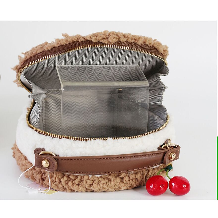 ロールケーキみたいなデザインのもこもこショルダーバッグです。