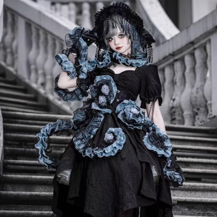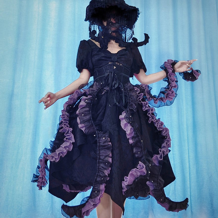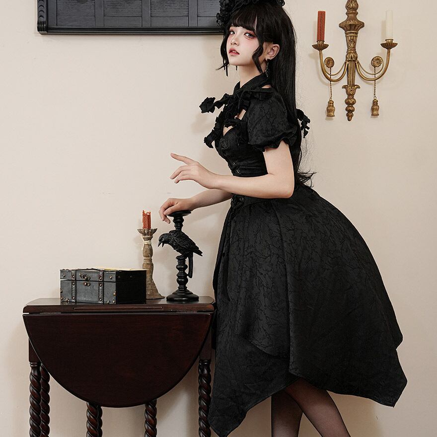 サブカル 服 地雷系 通販 スカート イレギュラーヘム リボン柄 レースアップ ゴスロリ ダークゴシック 闇かわいい 双子コーデ