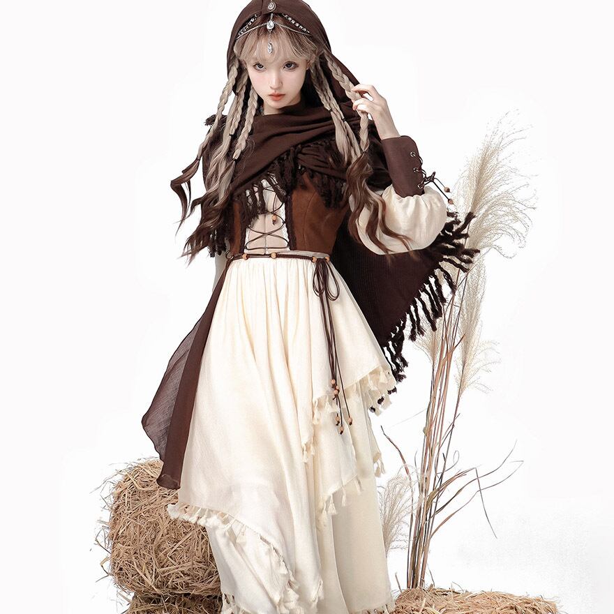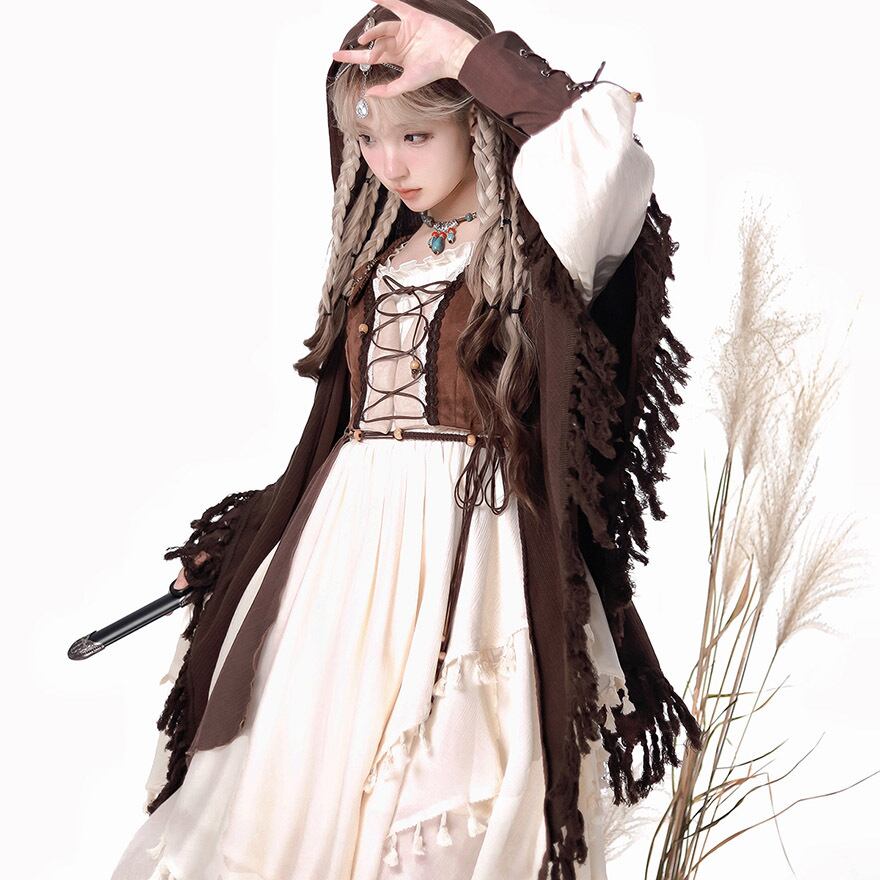 サブカル 服 地雷系 通販 スチームパンク ワンピース ベスト マント 重ね着 魔女風 パンク レトロ クラシカル 量産型