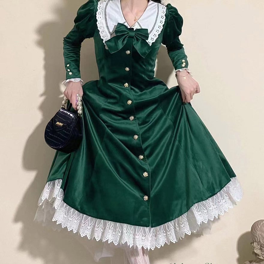 サブカル 服 地雷系 通販 ワンピース ドレス クラシカル 長袖 ベルベット クラロリ エレガント 大人かわいい お出かけ お呼ばれ 量産型
