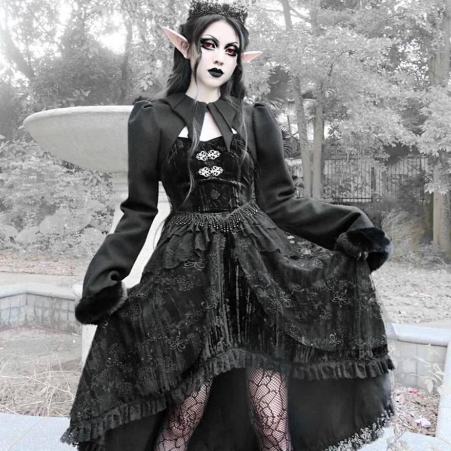 サブカル 服 地雷系 通販 服 Blood ドレス ノースリーブ ハードゴシック 上品 大人ゴシック ダークゴシック 大人ゴシック パーティ お出かけ