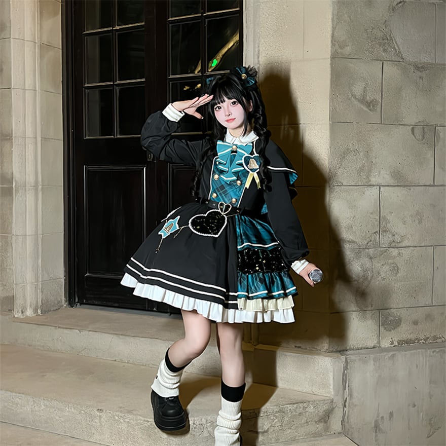 サブカル 服 地雷系 通販キラキラ アイドル系 コンカフェ ステージ衣装 ハート アップリケ チェーンアクセサリー イベント ステージ衣装 アイドル服