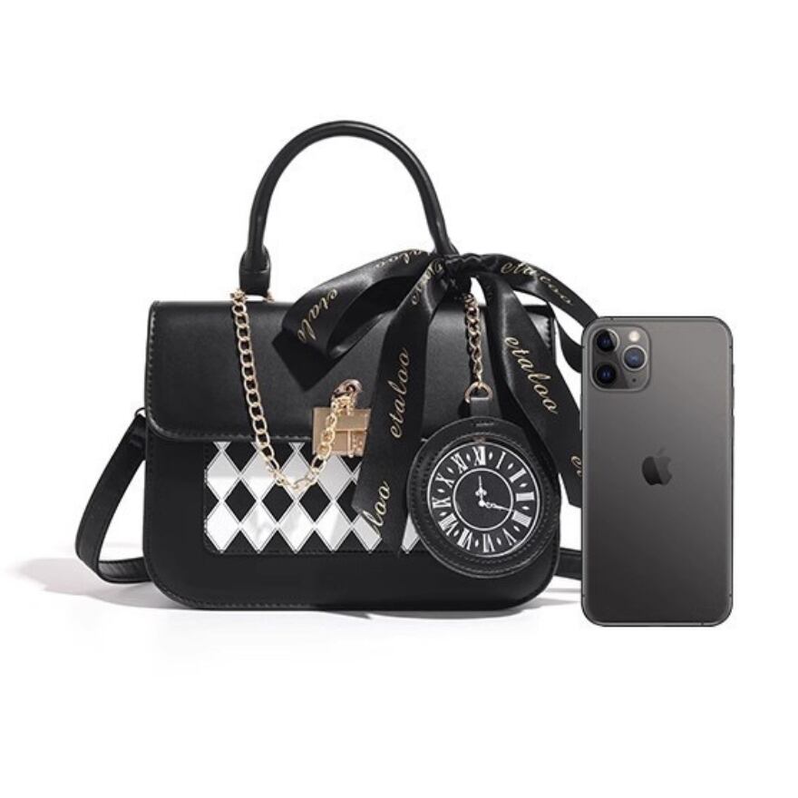 程よいサイズ感のアーガイル柄のプチプラおしゃれショルダーバッグです。