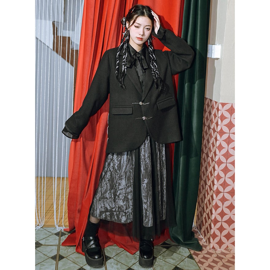 サブカル 服 地雷系 通販 チャイナ風服 古怪舎 スカート チャイナ服 ロングスカート バンブー柄 シアー チュール ハイウエスト エレガント 普段着使い 闇かわいい ファッション