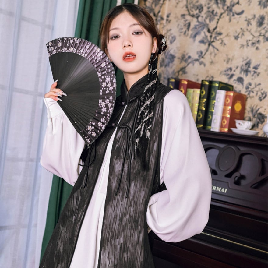 サブカル 服 地雷系 通販 チャイナ風服 古怪舎 チャイナ服 ワンピース ロング丈 重ね着 Aライン シャツ ツーピース エレガント 普段着使い 闇かわいい ファッション