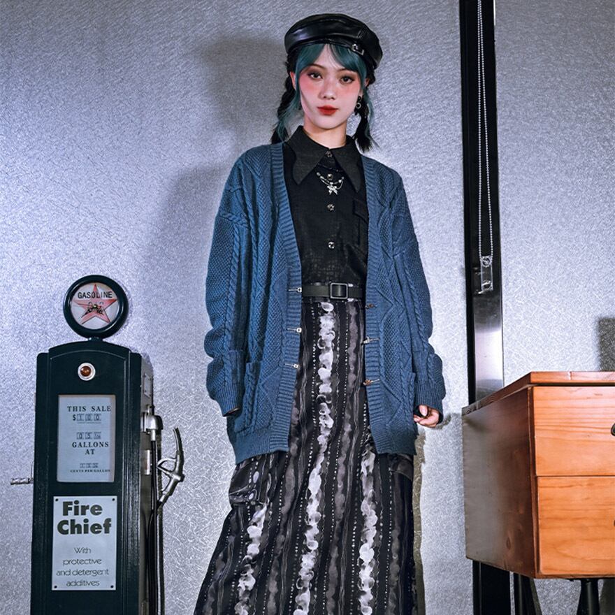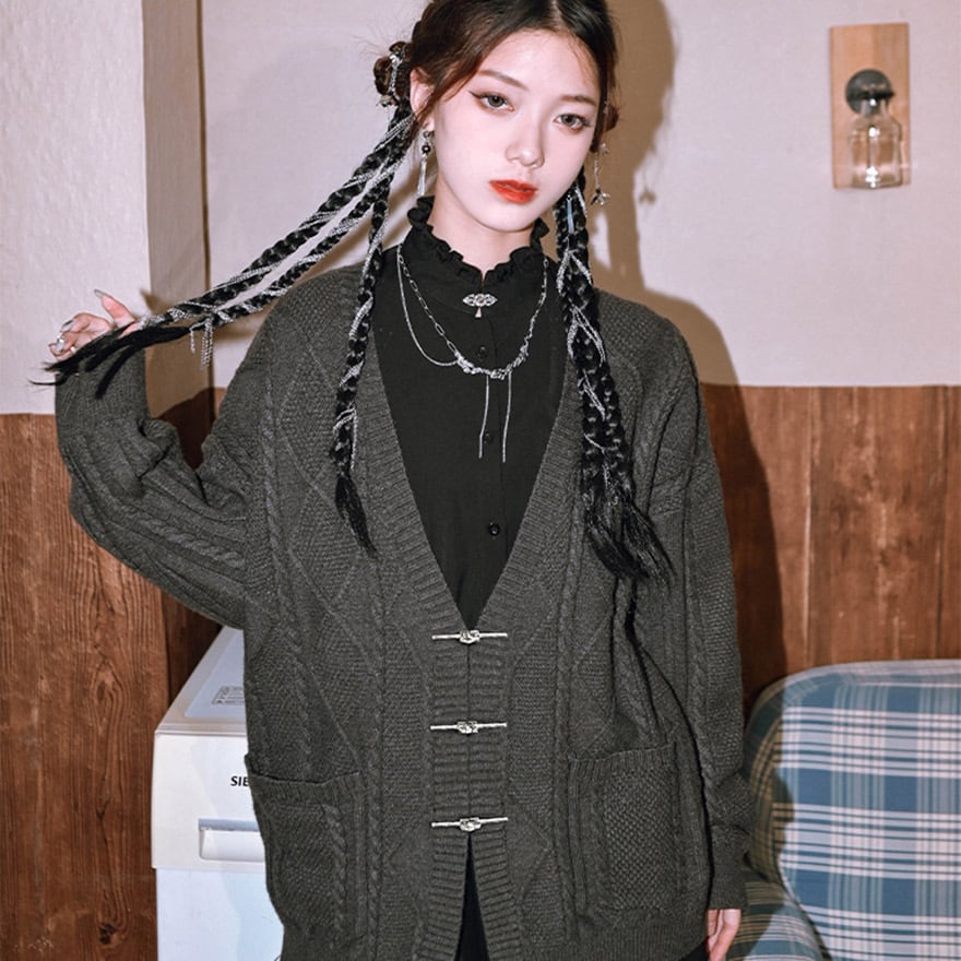 サブカル 服 地雷系 通販 チャイナ風服 古怪舎 チャイナ服 長袖カーディガン ニット 羽織り セーター Vネック エレガント 普段着使い 闇かわいい ファッション