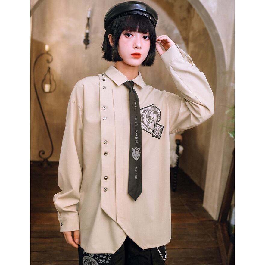 サブカル 服 地雷系 通販 チャイナ風服 古怪舎 チャイナ服 長袖シャツ ブラウス レトロ カレッジスタイル ワッペン エレガント 普段着使い 闇かわいい ファッション