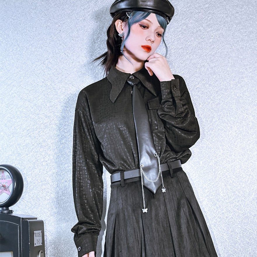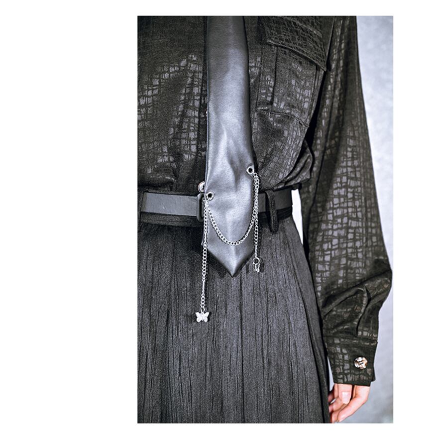 サブカル 服 地雷系 通販 チャイナ風服 古怪舎 チャイナ服 ネクタイ チェーン ファッション小物 レザー エレガント 普段着使い 闇かわいい ファッション
