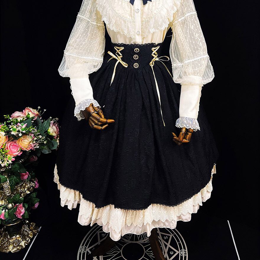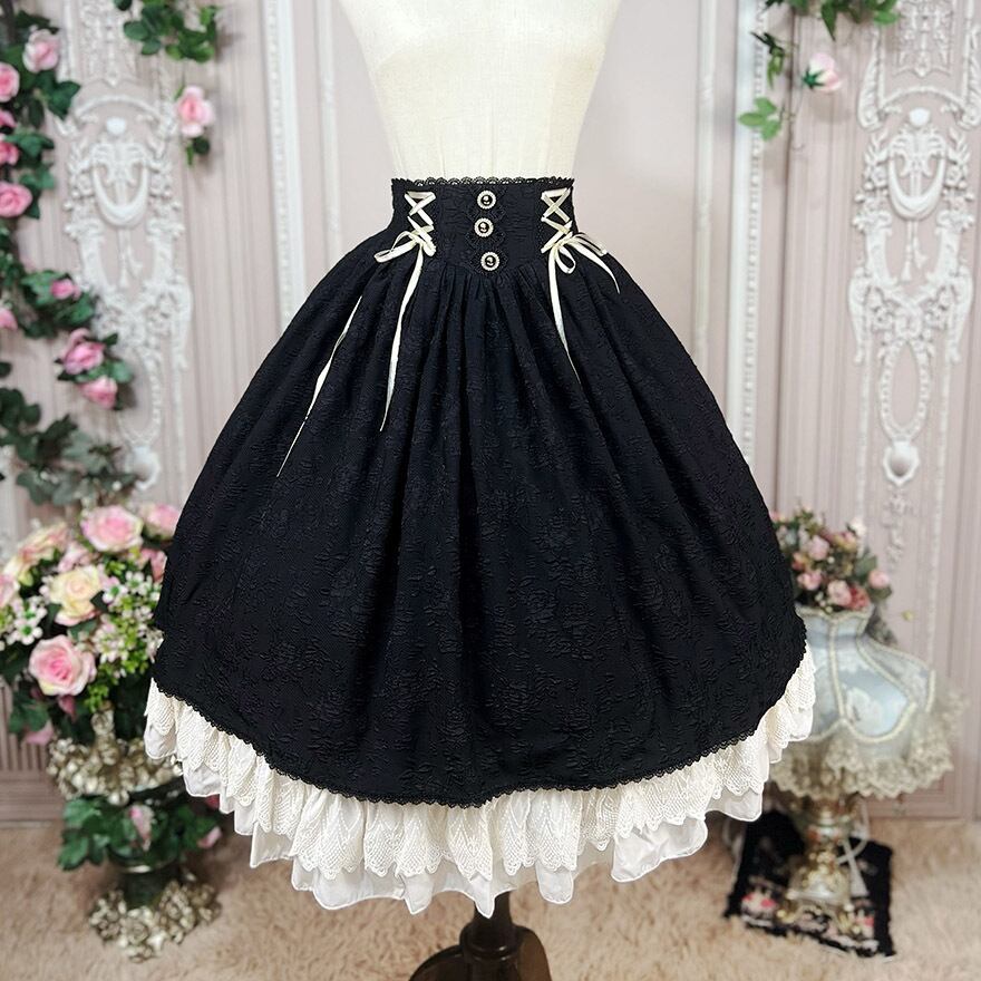 サブカル 服 地雷系 通販 ハイウエスト レース リボン クラロリ レイヤード フレアスカート 量産型