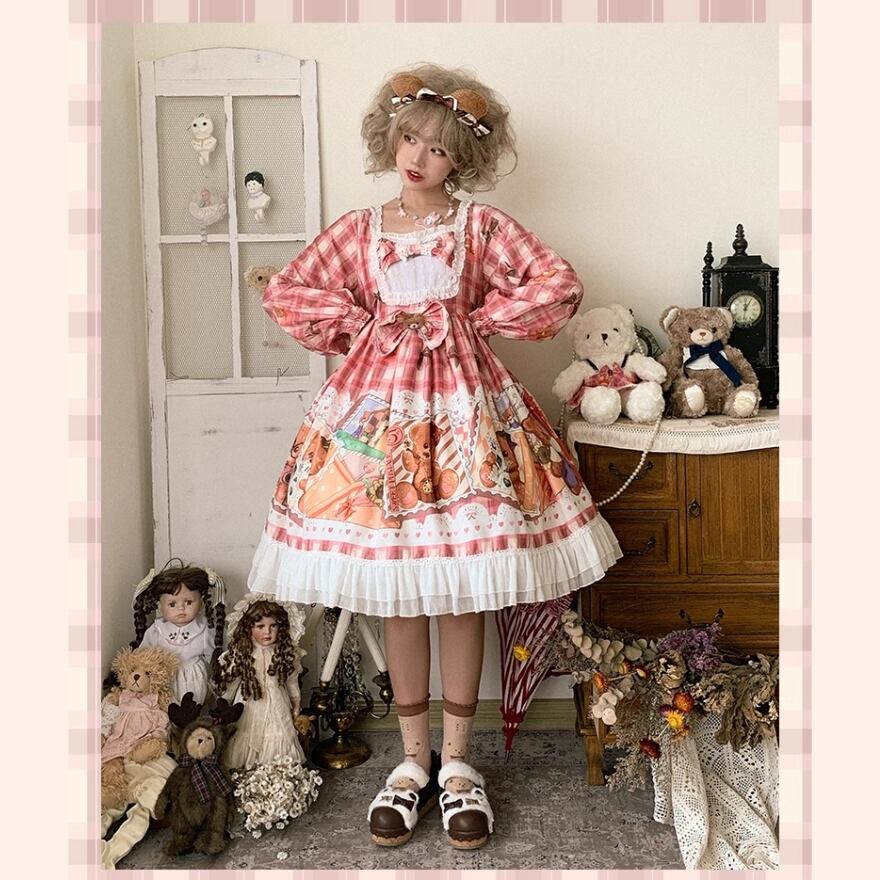 サブカル 服 地雷系 通販 ロリィタ 服 ロリータファッション ワンピース 長袖 ロリータ初心者 チェック柄 アニマルプリント プチプラ