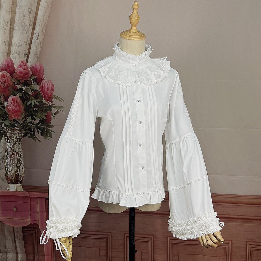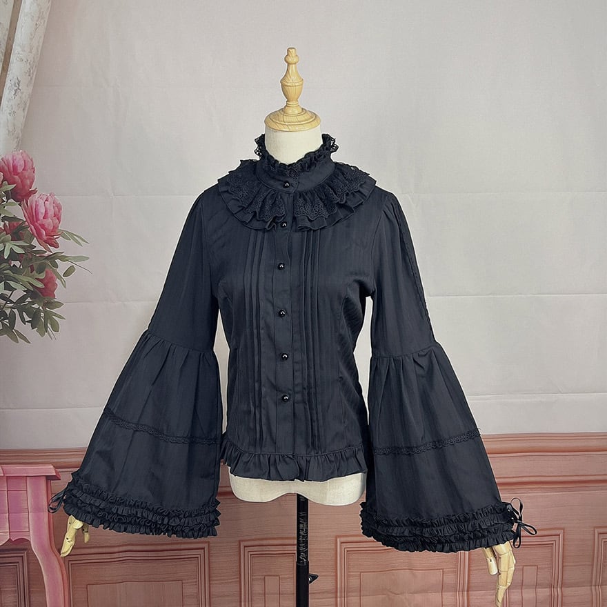 サブカル 服 地雷系 通販 長袖 フレアスリーブ 姫袖 クラロリ ブラウス princess トランペットスリーブ フリル ピンタック 量産型
