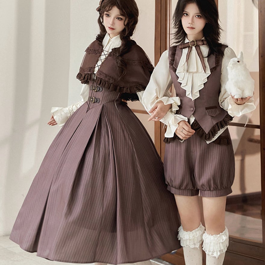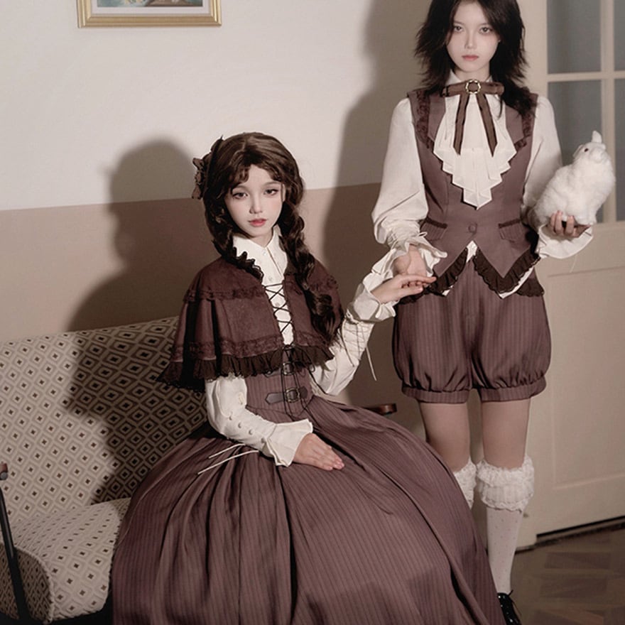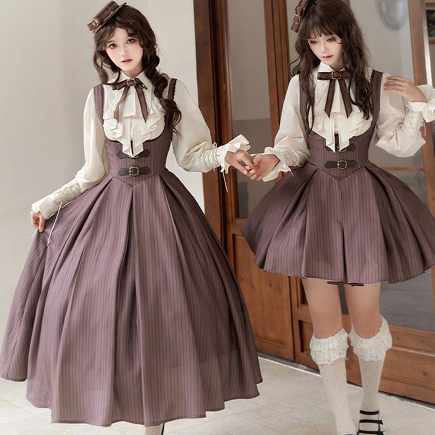 サブカル 服 地雷系 通販 ジャンスカ ワンピース ブラウス 帽子 リボン ネックレス クラロリ ミニスカ 5点セット レトロ 秋カラー 双子コーデ