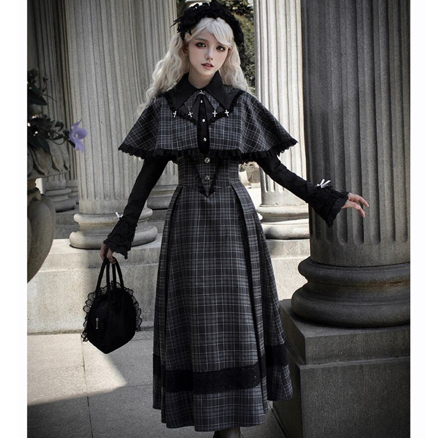 サブカル 服 地雷系 通販 クラロリ 長袖シャツ ブラウス 十字架 チェック柄 フリル エレガント ダークファッション 控えめ