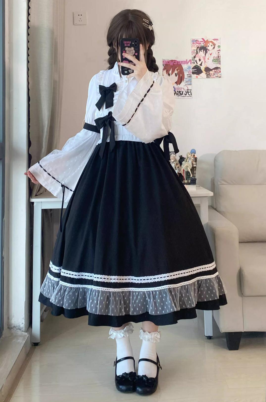 サブカル 服 地雷系 通販 クラロリ ワンピースバイカラー 長袖 ワンピース ベビードール 量産型