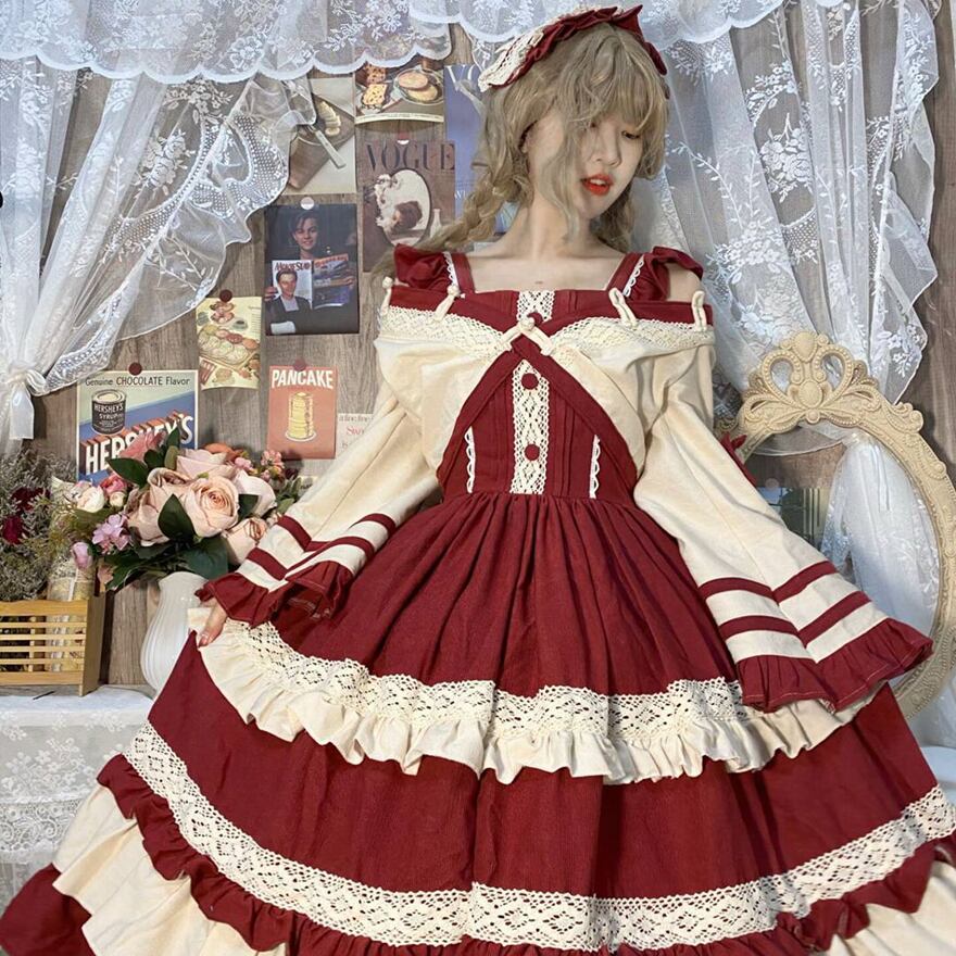 サブカル 服 地雷系 通販 中華ロリータ セットアップ 長袖ワンピース チャイナ風 ベビードール 量産型