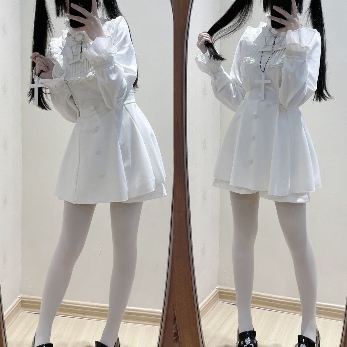 大きなボウタイにレースがおしゃれな病み可愛い地雷系セットアップです。