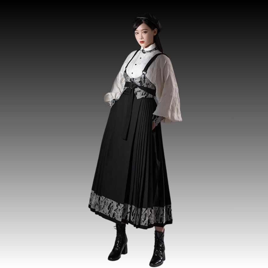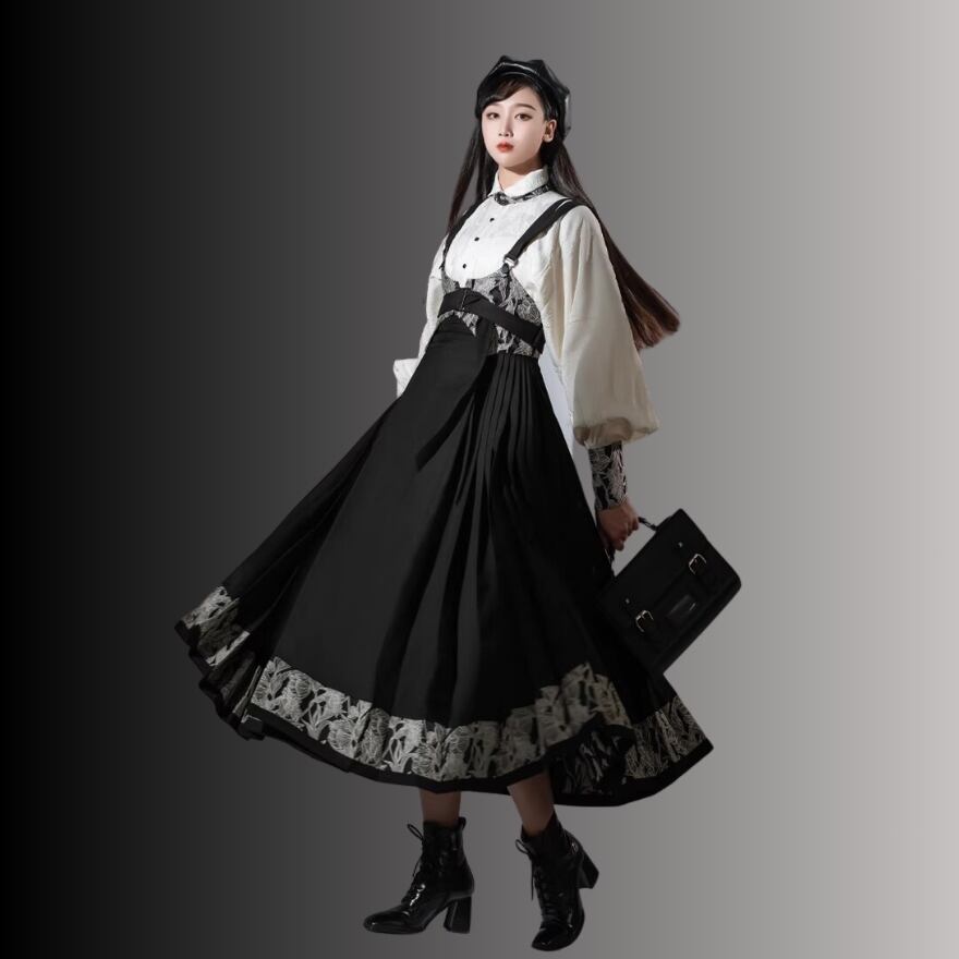 ホワイト(長袖シャツ)/ブラック(ジャケット、スカート、ビスチェ)