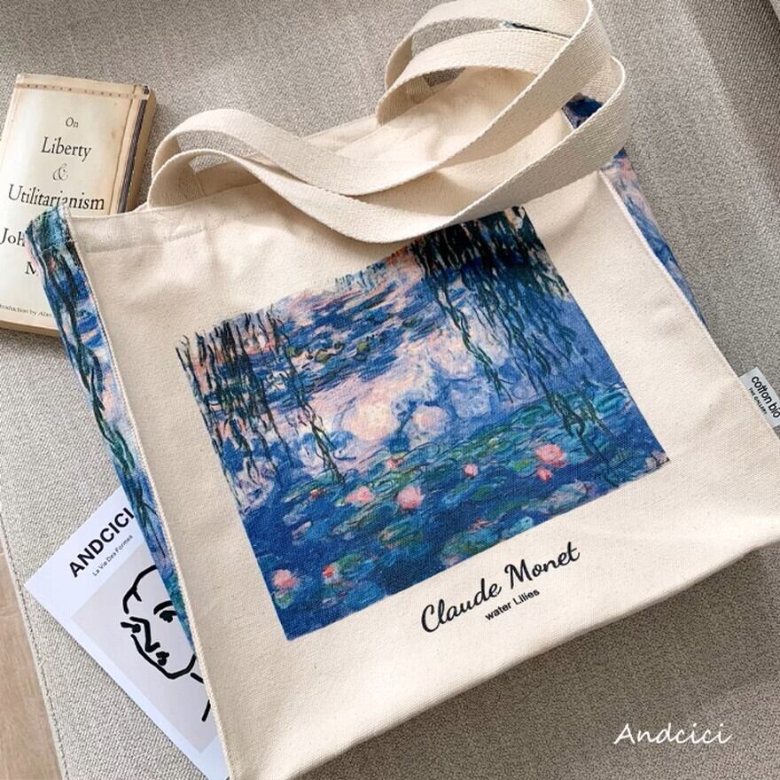 サブカル 服 地雷系 通販 油絵風 トートバッグ ANDCICI 帆布 モネ《睡蓮スイレン》