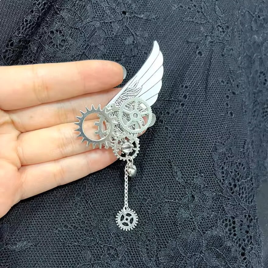 サブカル 服 地雷系 通販 アクセサリー スチームパンク ブローチ 歯車 フェザー メタル