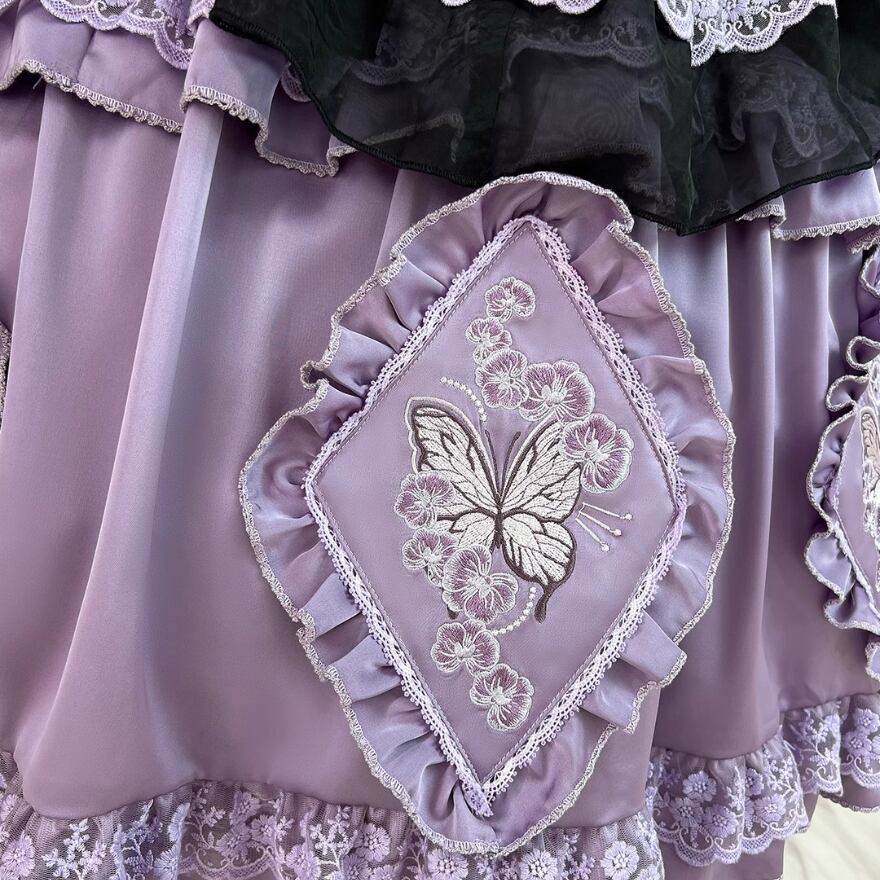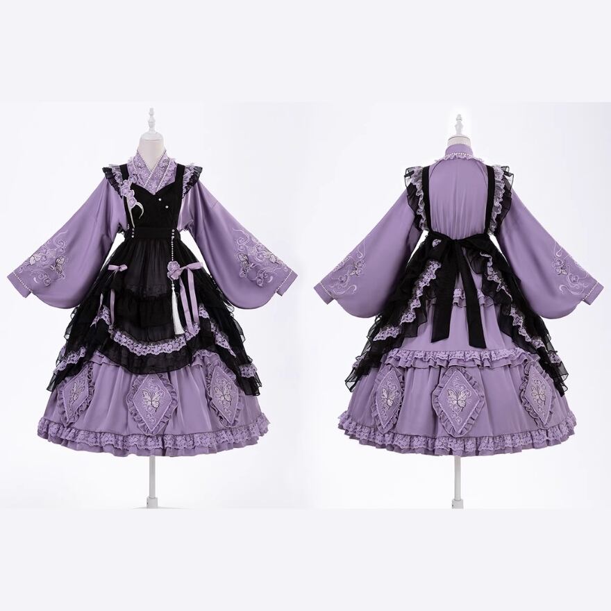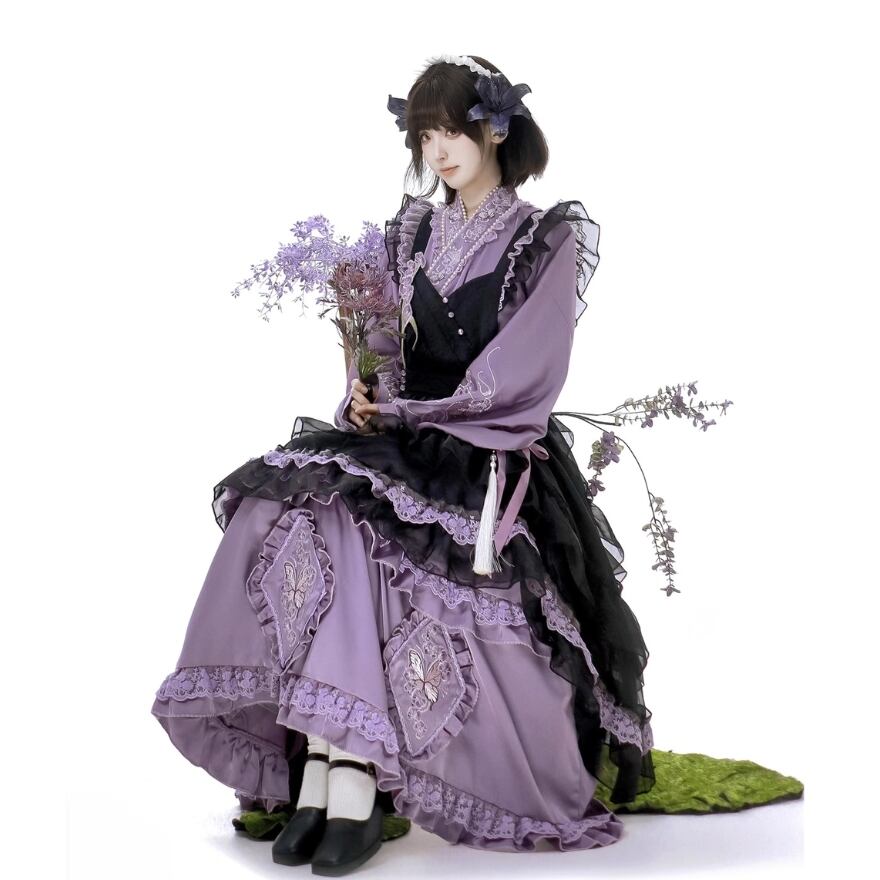 サブカル 服 地雷系 通販 メイドワンピ コンカフェ 着物 メイドワンピース 胡蝶蘭 クラロリ パープル ワンピース単品 ゆめかわふぁっしょん メイドカフェ