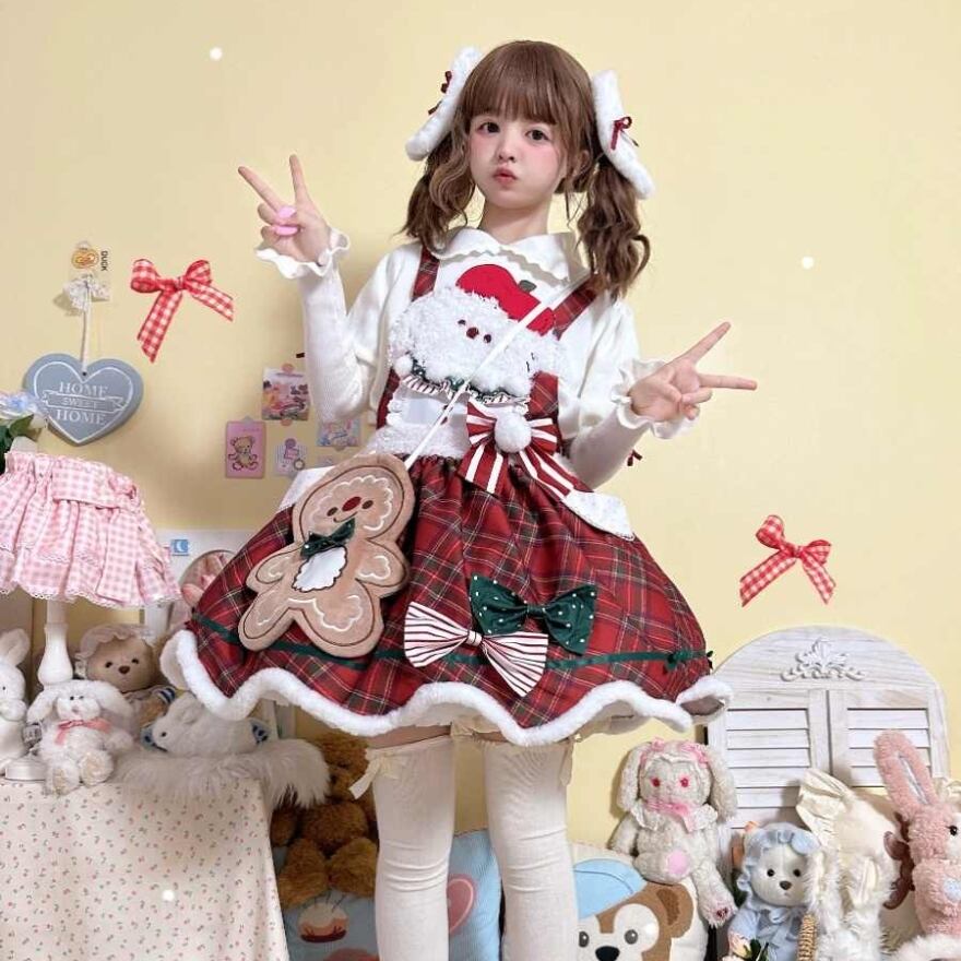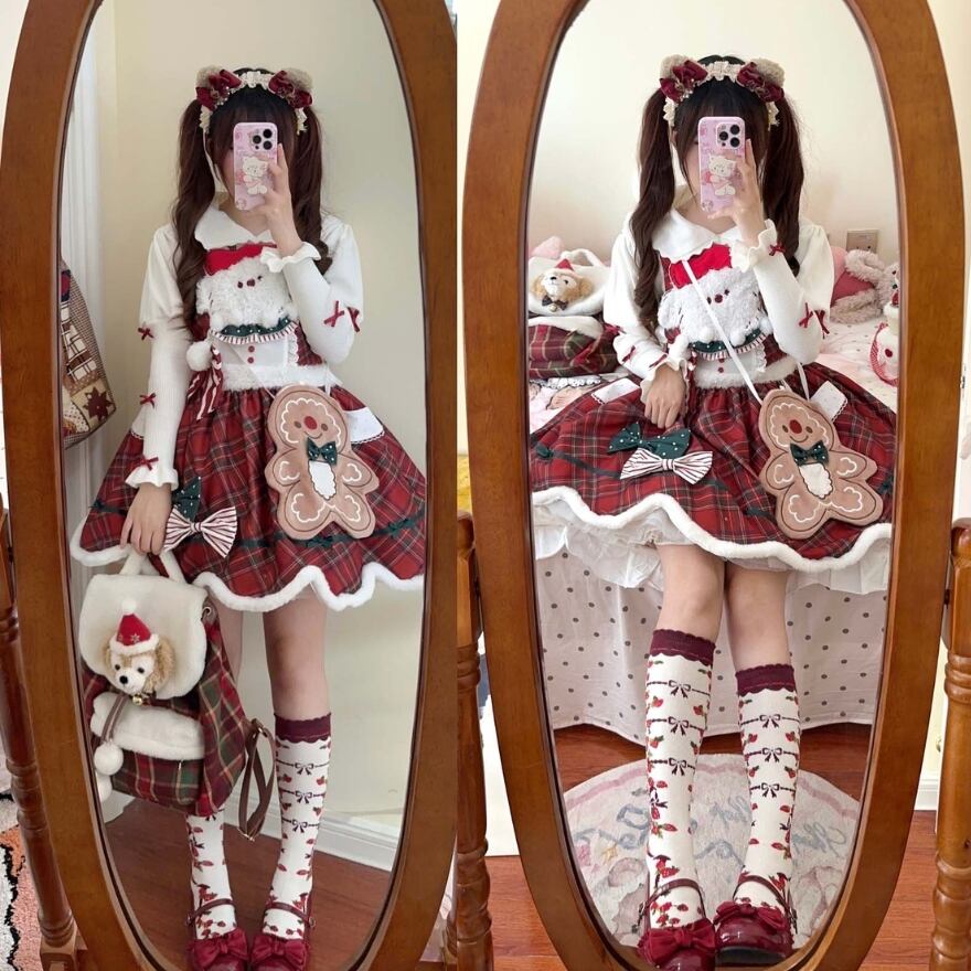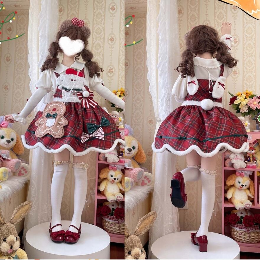 サブカル 服 地雷系 通販 サンタコーデ ロリィタ 服 クリスマスコーデ 3点セット チェック柄 サンタレディ イベント コンカフェ ロマンティック lolita