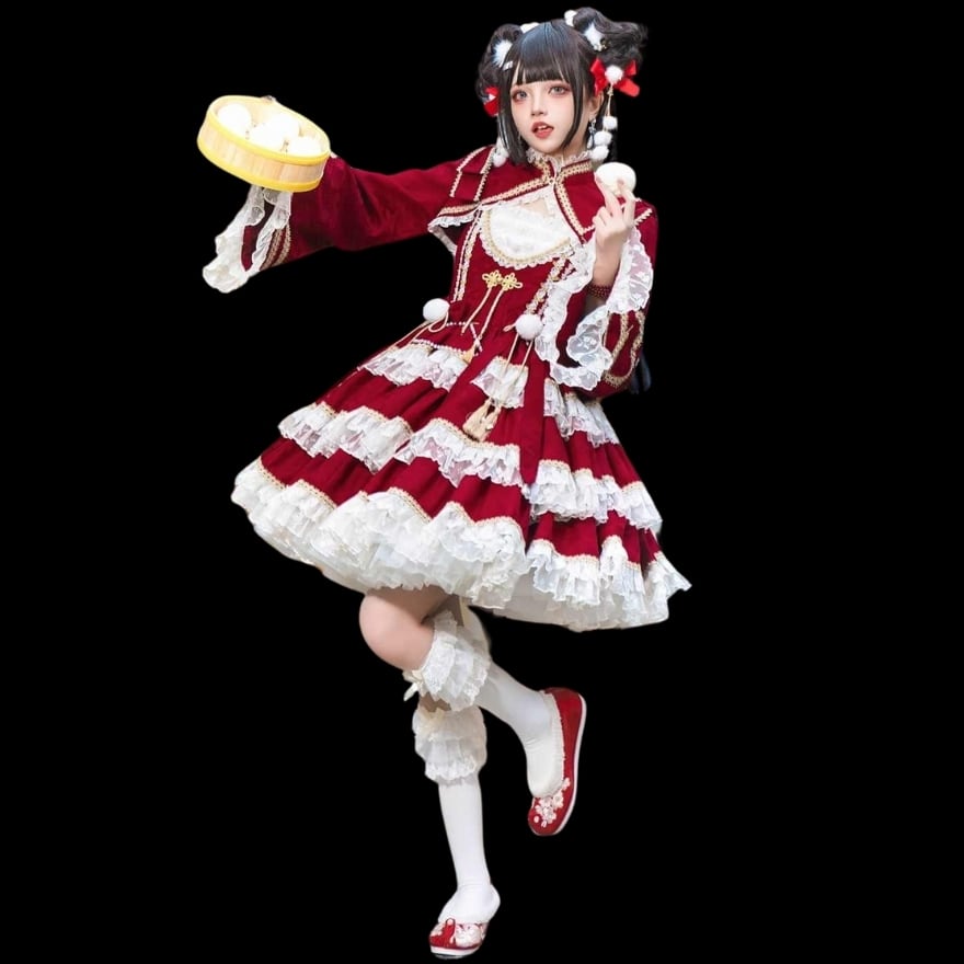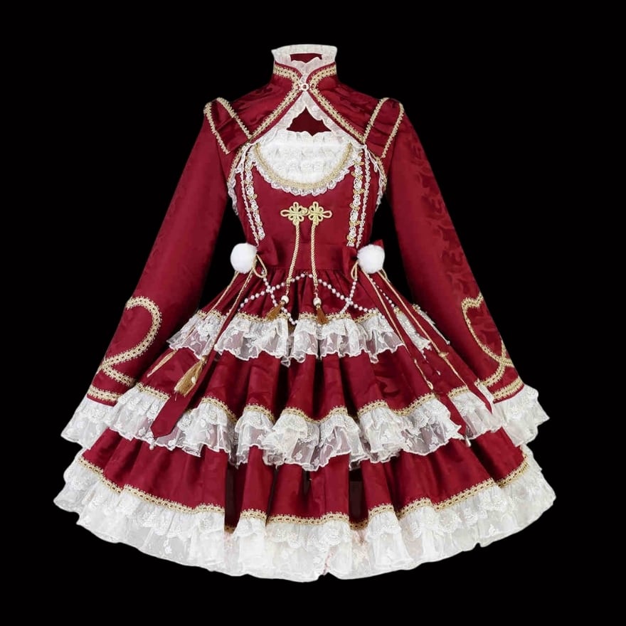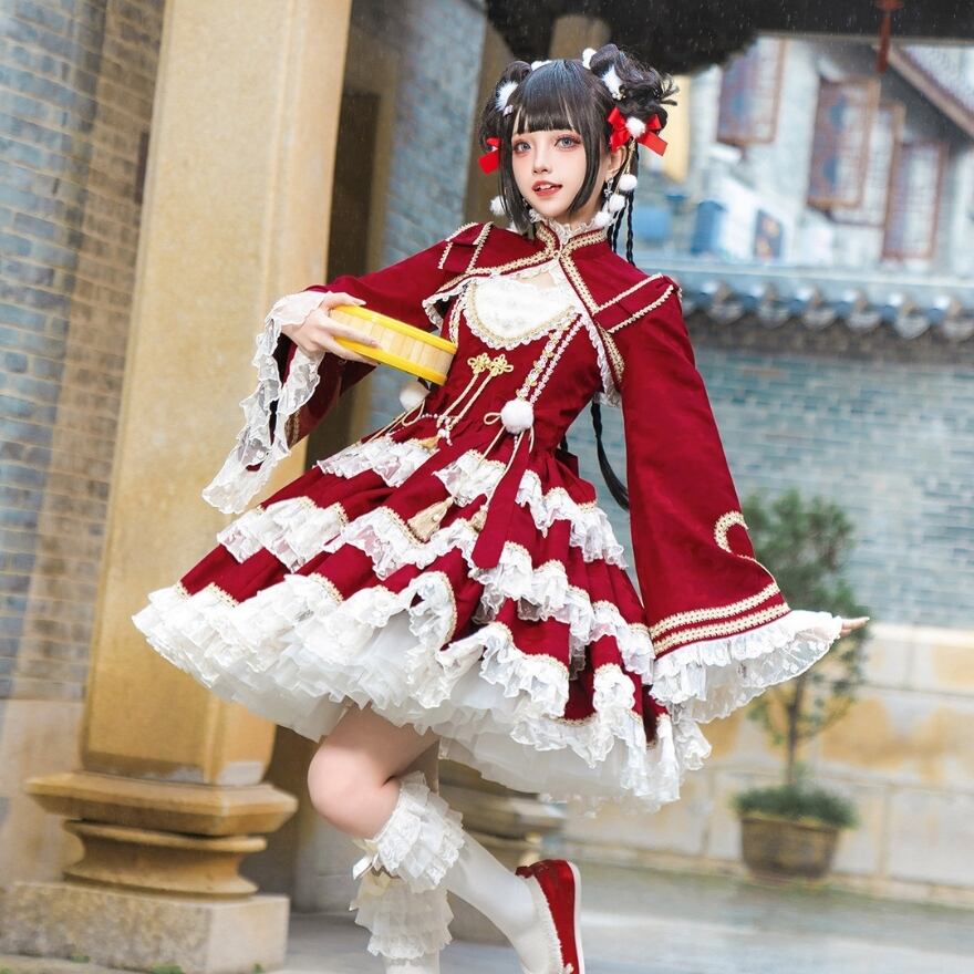 サブカル 服 地雷系 通販 チャイナ風 サンタレディ 中華ロリータ クリスマスコーデ セットアップ 姫ロリ エレガント イベント コンカフェ ロマンティック lolita