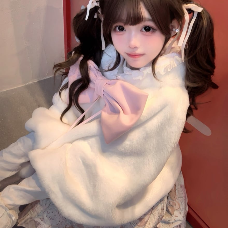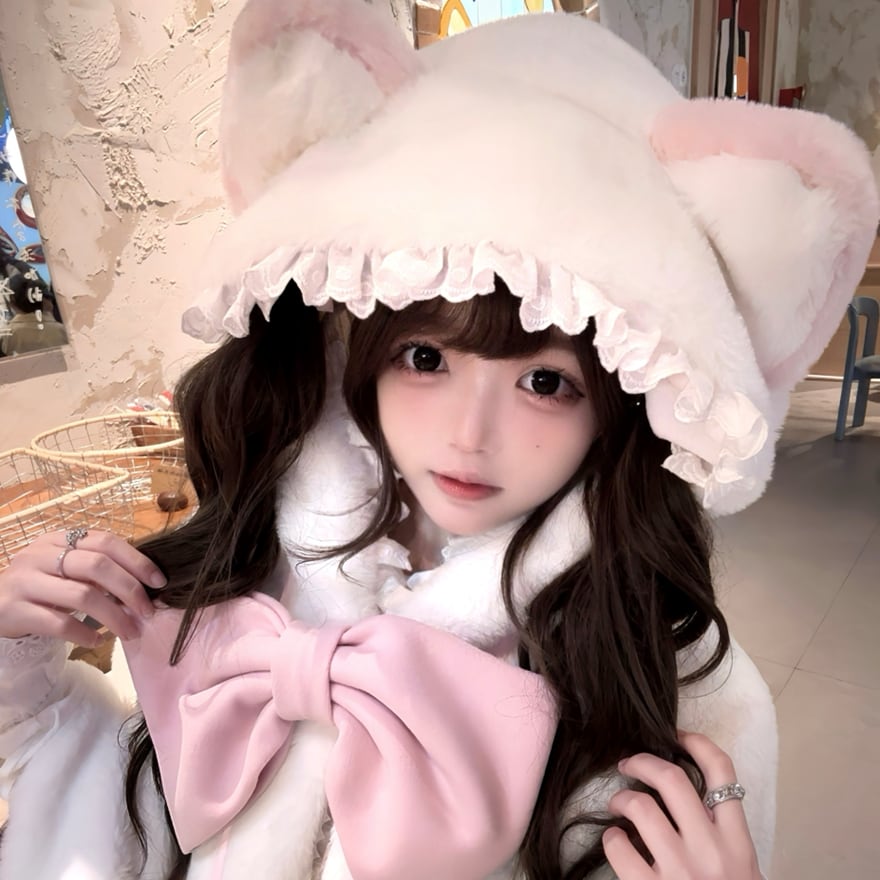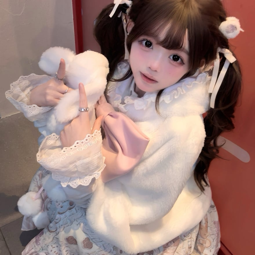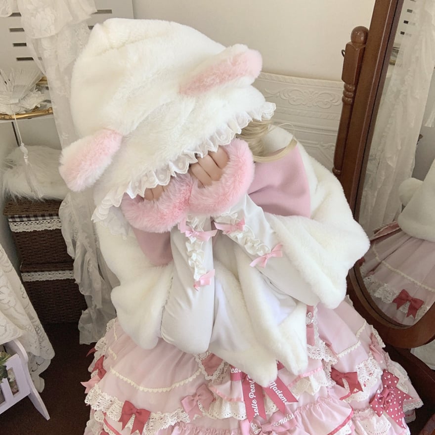 サブカル 服 地雷系 通販 ロリィタ 服 猫耳フード付きケープ コートふわふわ ハート ポンポン 暖か フェアリーテイル ロマンティック
