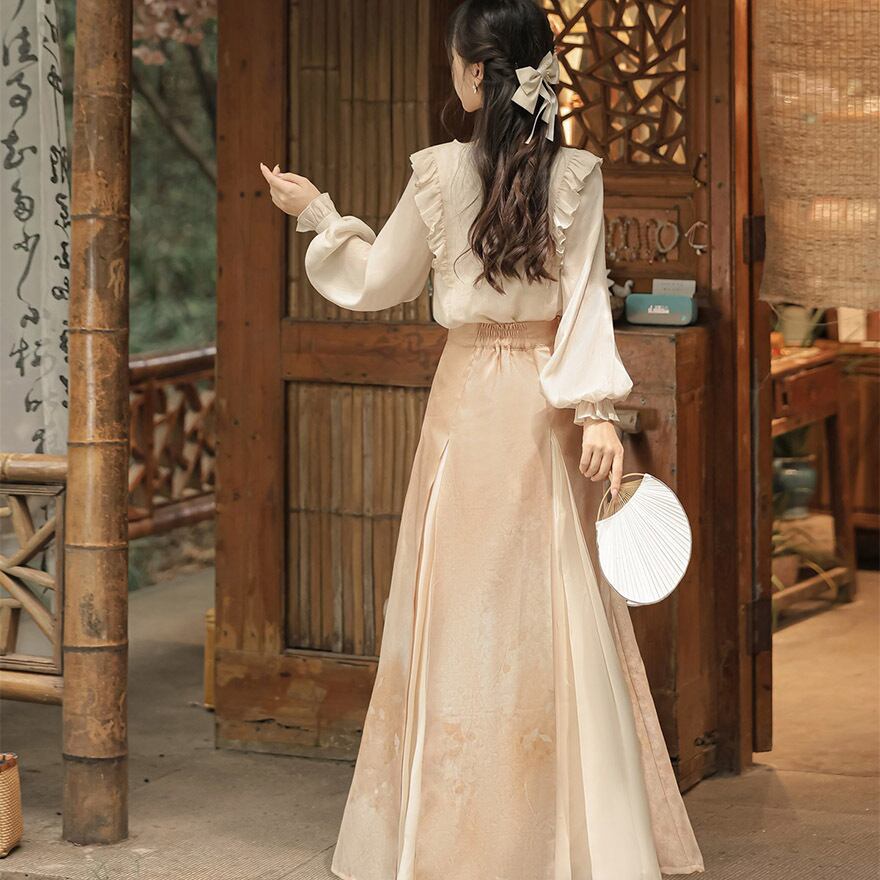 サブカル 服 地雷系 通販 クラロリ ロングスカート Aライン パール エレガント チャイナドレス きれいめ 上品 レトロ ダークファッション 原宿スタイル
