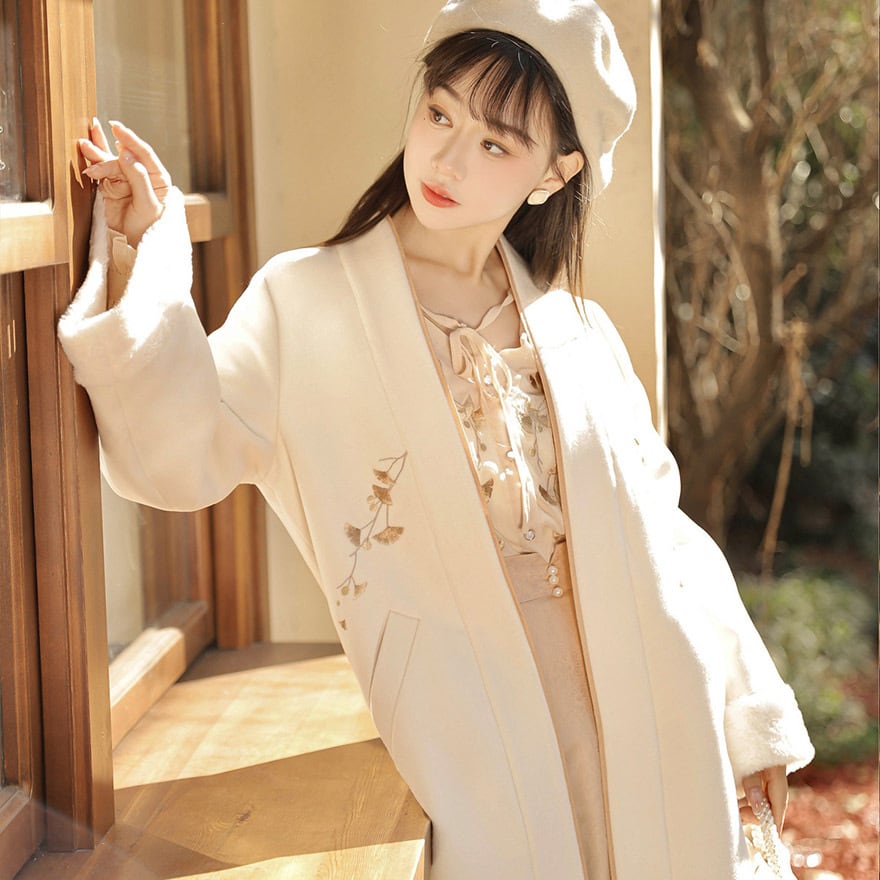 イチョウ柄の刺繍がお洒落なロングコートです。