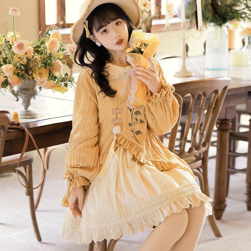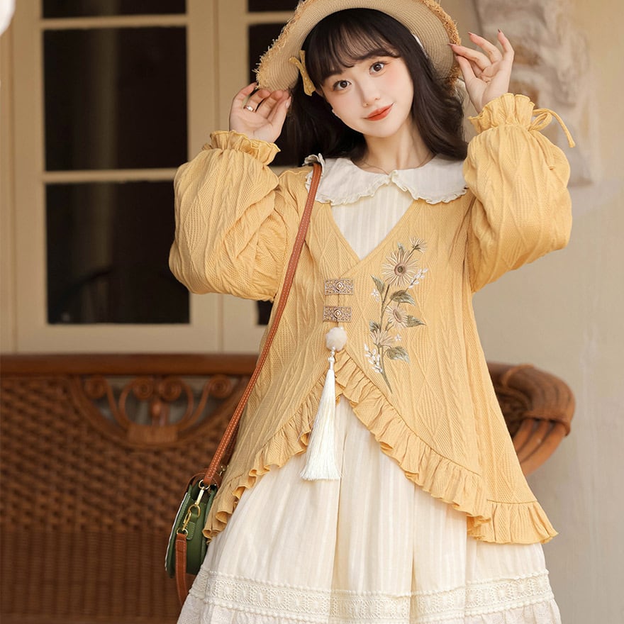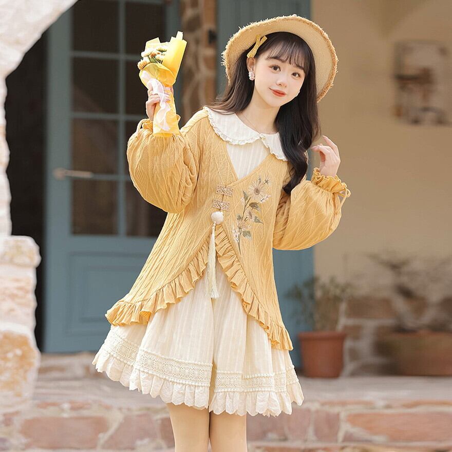 サブカル 服 地雷系 通販 セットアップ ジャケット カーディガン ワンピース ひまわり 刺繍 クラロリ ガーリー ゆめかわふぁっしょん ベビードール 量産型