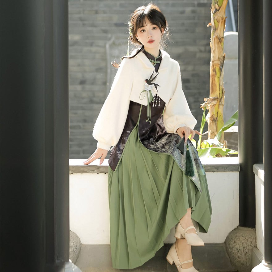 サブカル 服 地雷系 通販 チャイナ風 セットアップ 3点セット アウター 羽織り ジャケット トップス ノースリーブ ロングスカート プリーツスカート レトロ チャイナドレス 量産型
