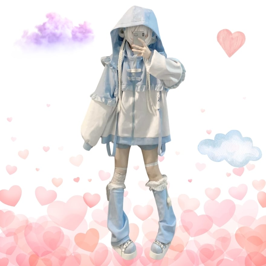 サブカル 服 地雷系 通販 国内発送 天使界隈 水色ロリータ フーディ レッグウォーマー